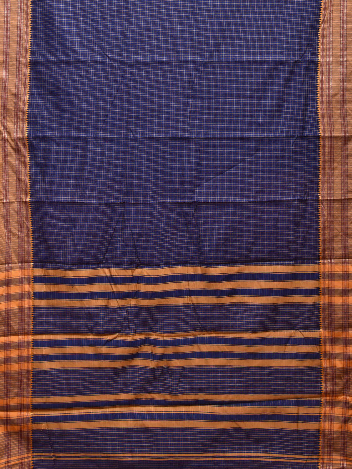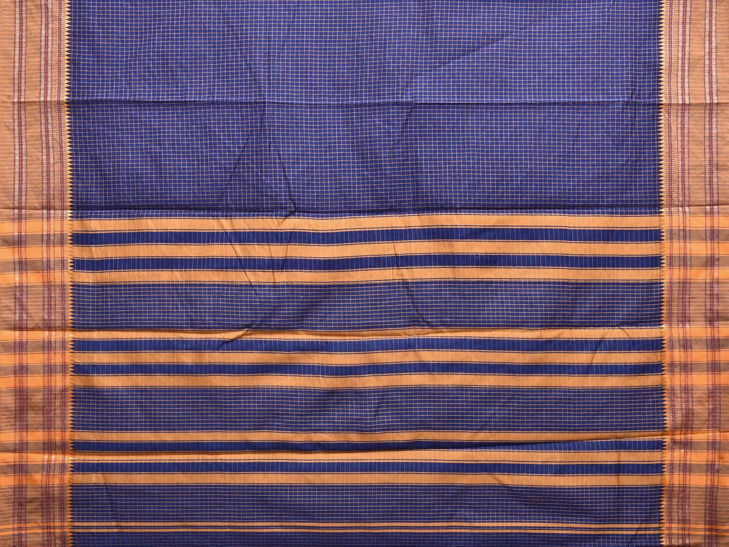 Dark Blue and Mustard Bamboo Cotton Saree with Checks Design No Blouse bc0401