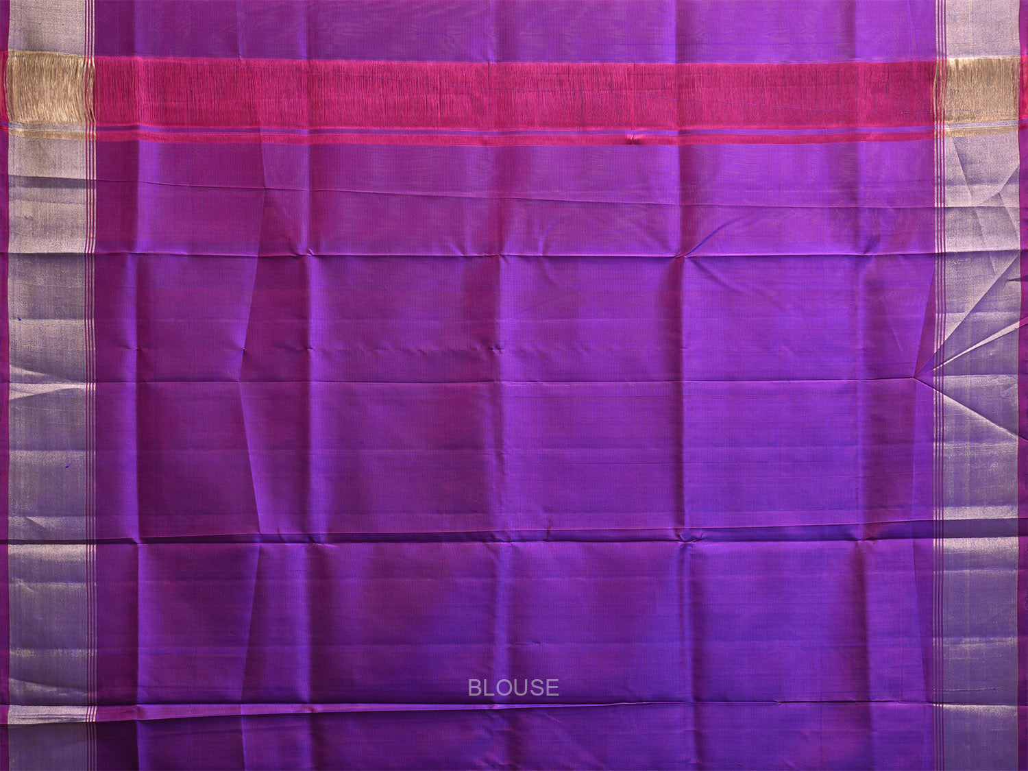 Dark Blue and Purple Uppada Silk Handloom Plain Saree with Contrast Pallu Design u2404