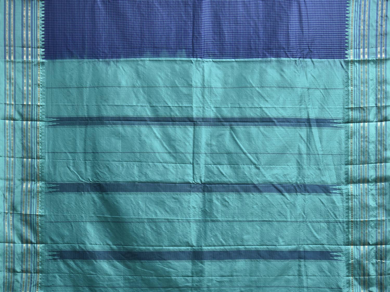 Dark Blue and Turquoise Narayanpet Silk Saree with Checks Design np1451