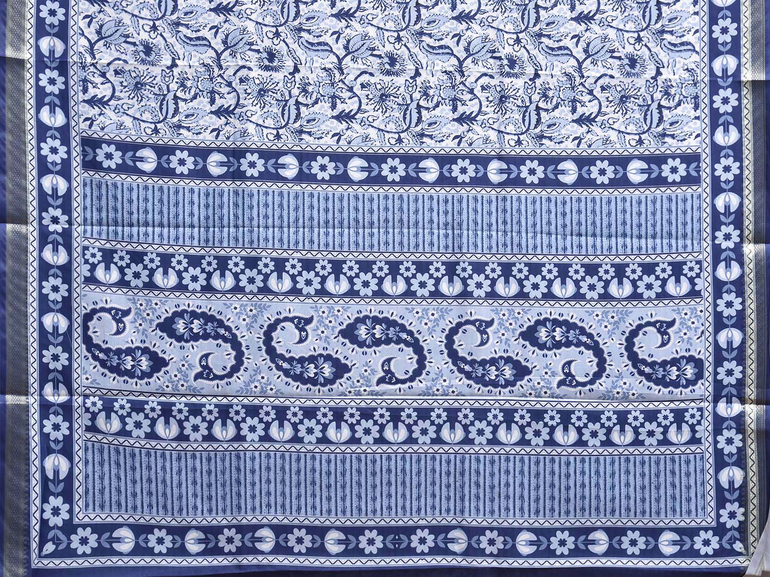 Dark Blue Bamboo Cotton Saree with Floral Digital Print Design. This is a blend of bamboo and cotton fibers, they have characteristics of both bamboo and cotton combined into one fabric. We Advise Gentle Handwash for Fabric Care.