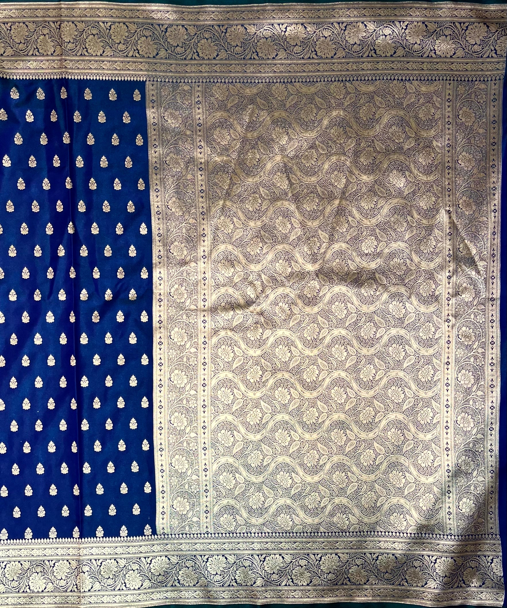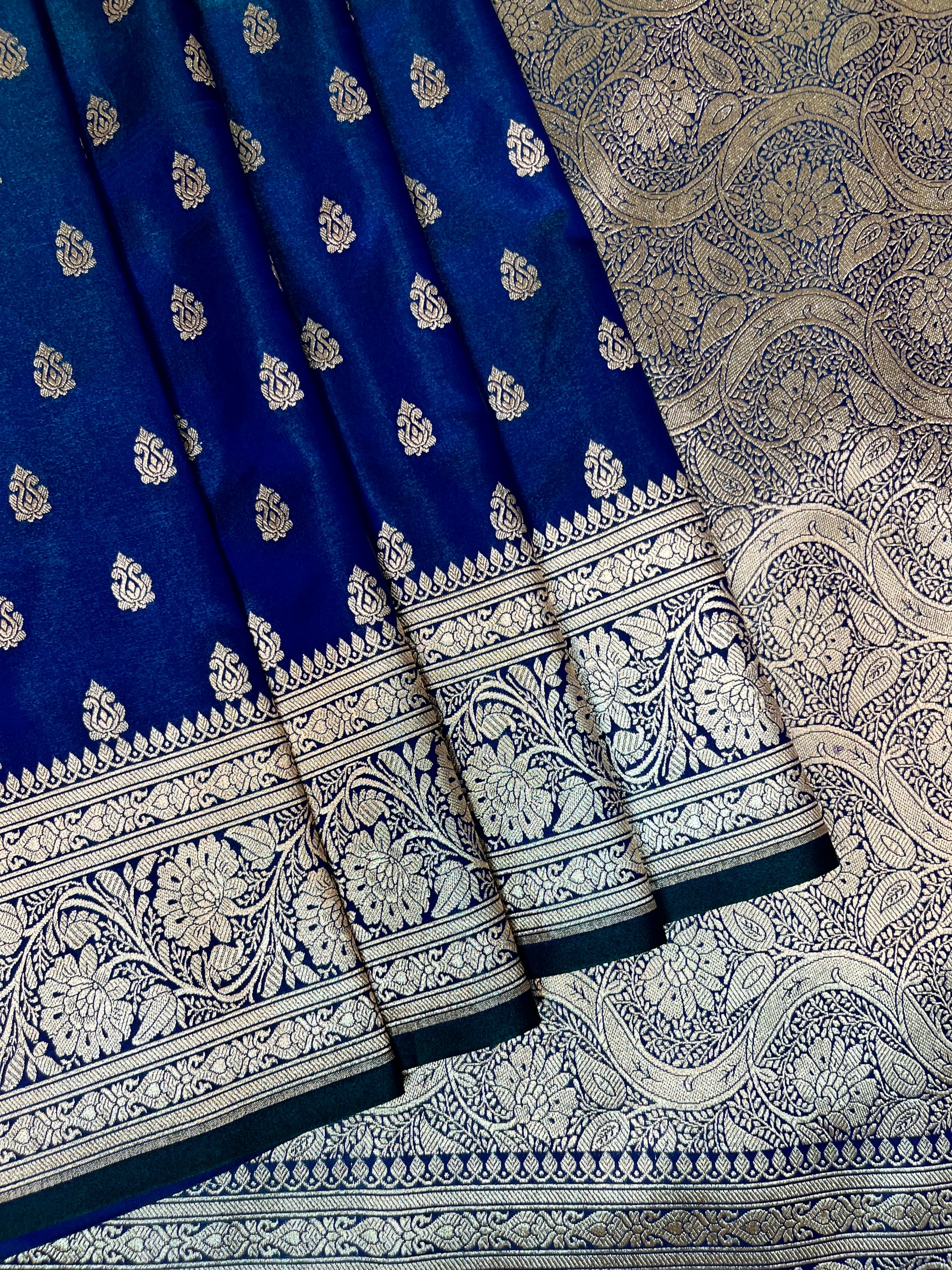 Dark Blue Katan Banarasi Saree with Silver Zari Floral Weaving And Grand Pallu B0510ds