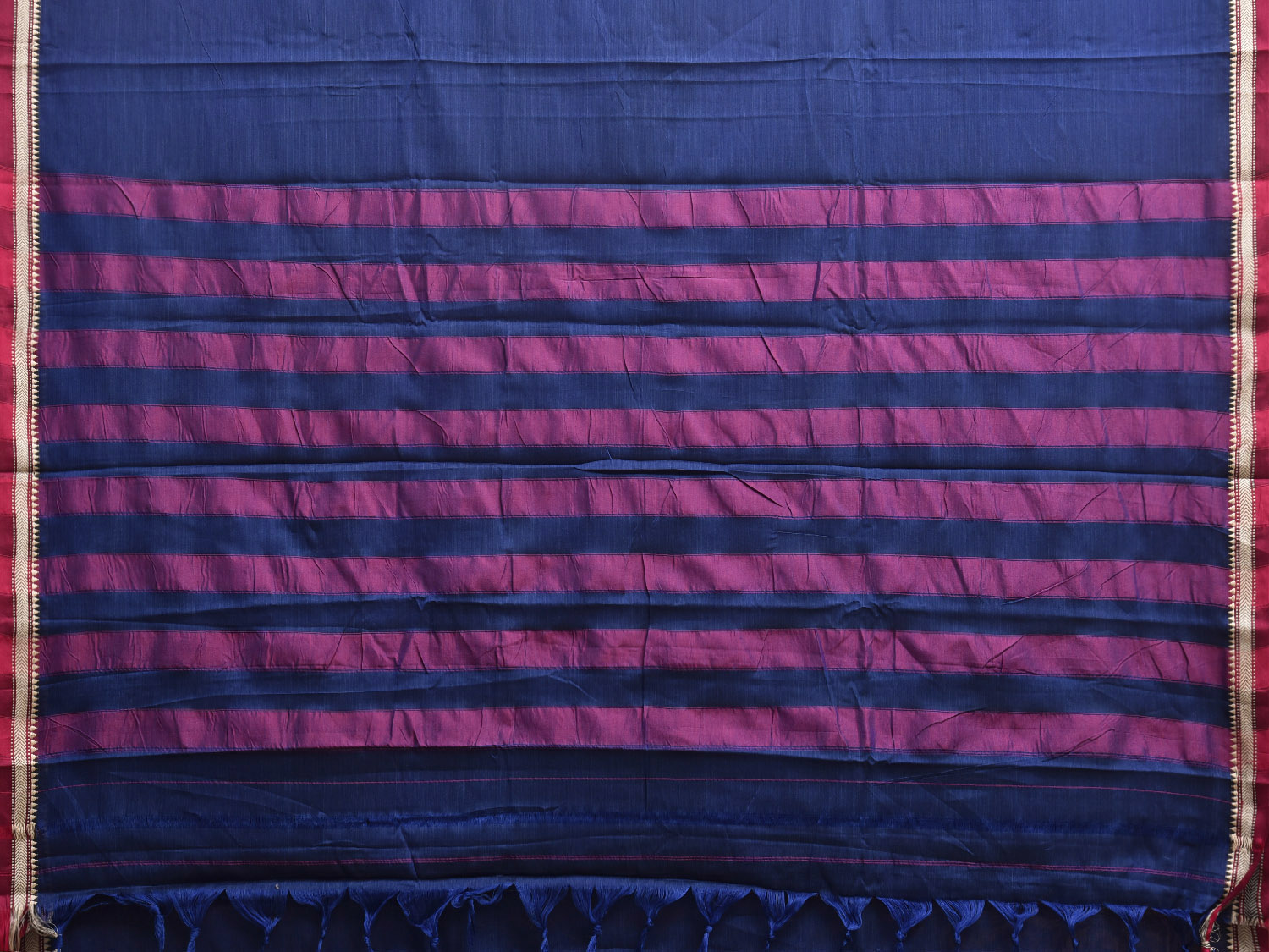 Dark Blue Narayanpet Cotton Plain Saree with Strips Pallu Design No Blouse