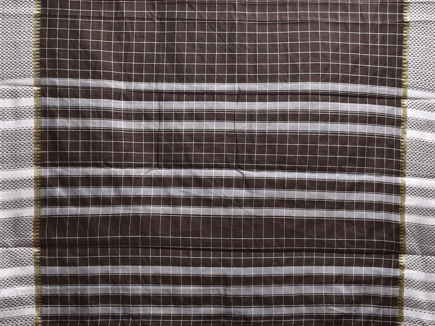 Dark Brown and White Bamboo Cotton Saree with Big Checks Design No Blouse bc0881