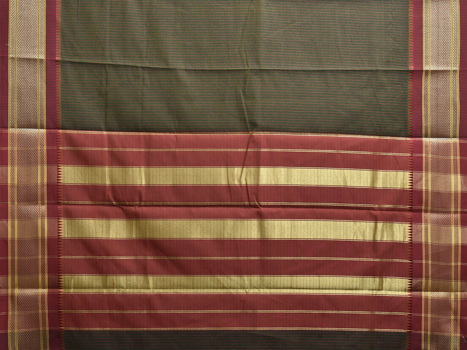 Dark Green and Red Bamboo Cotton Saree with Checks Design No Blouse bc0851