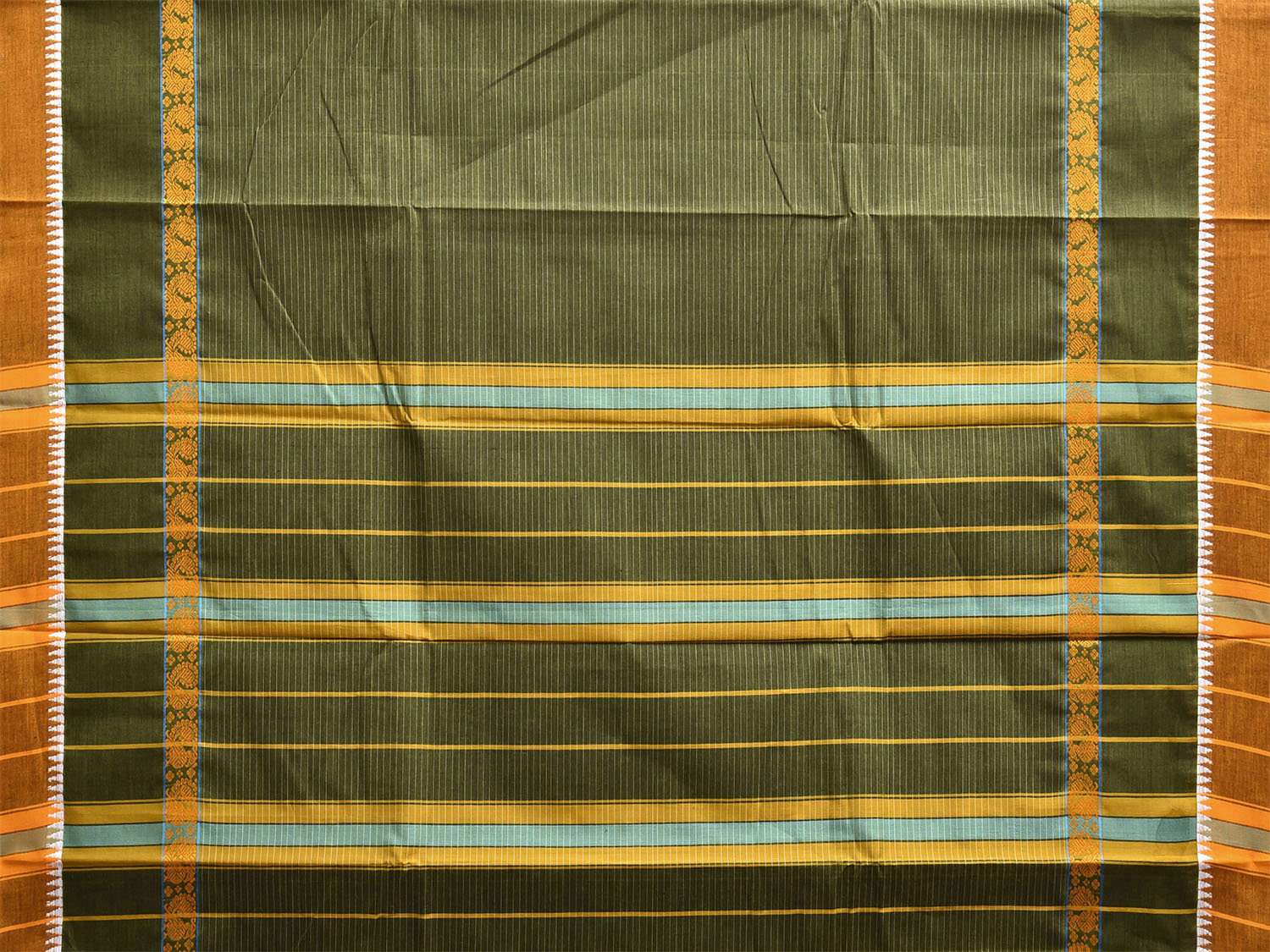 Dark Green and Yellow Narayanpet Cotton Handloom Saree with Strips and Big Border Design No Blouse np1291