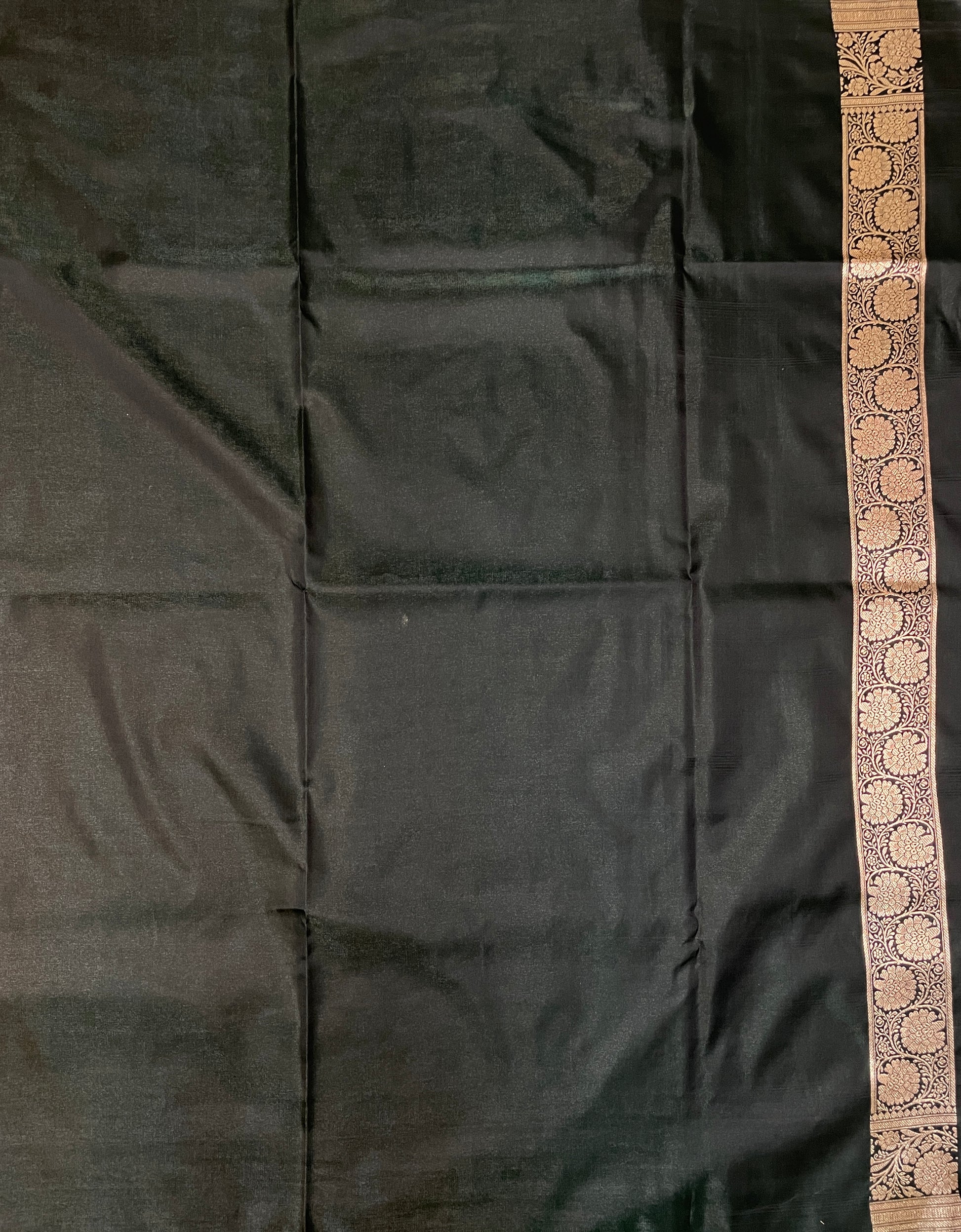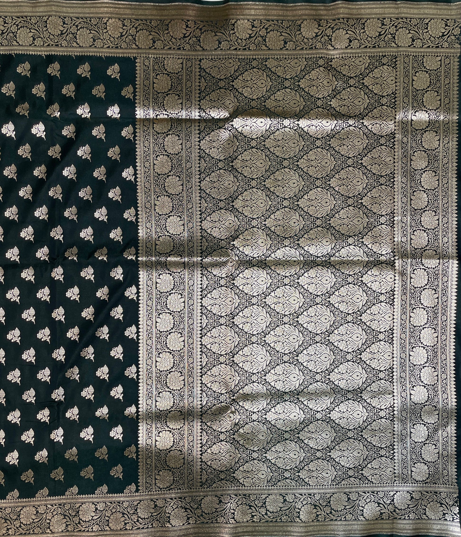 Dark Green Katan Banarasi Saree with Gold Zari Floral Weaving And Grand Pallu B0662ds