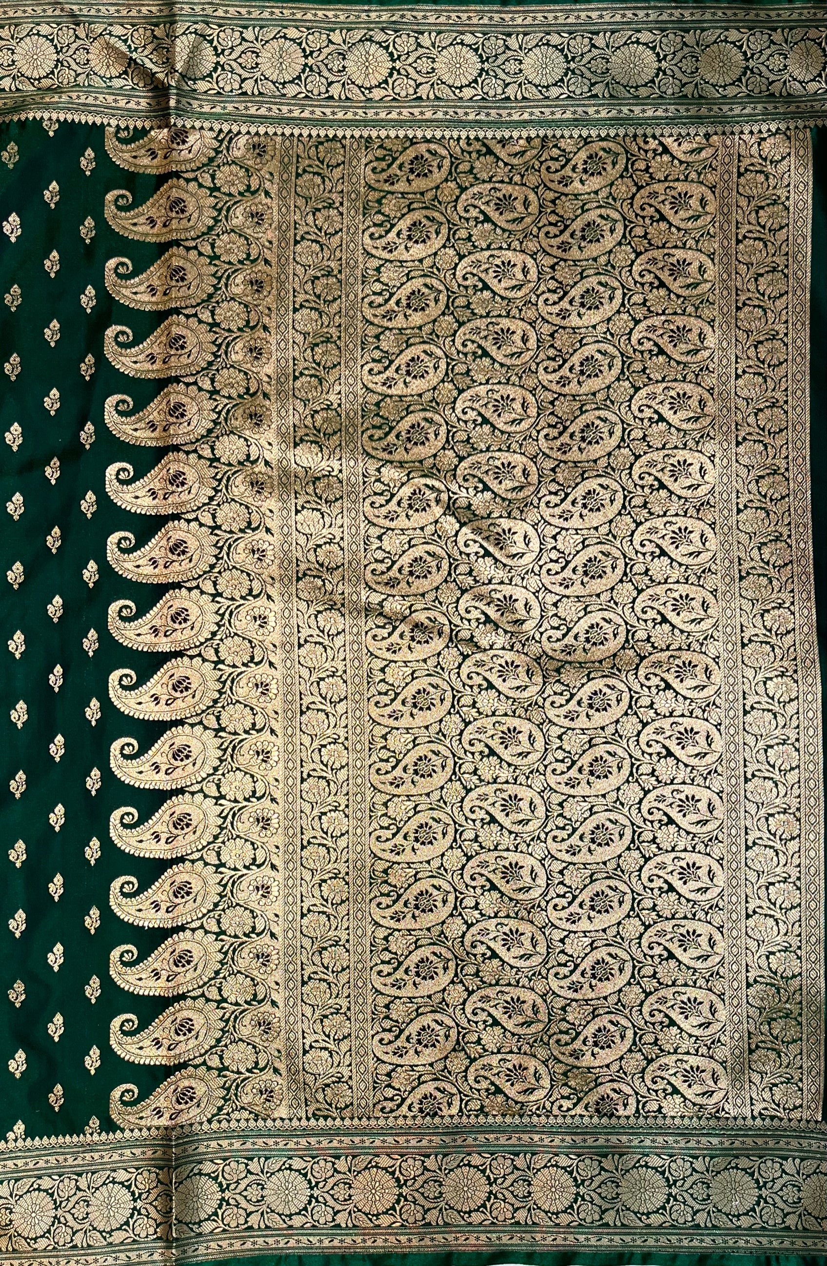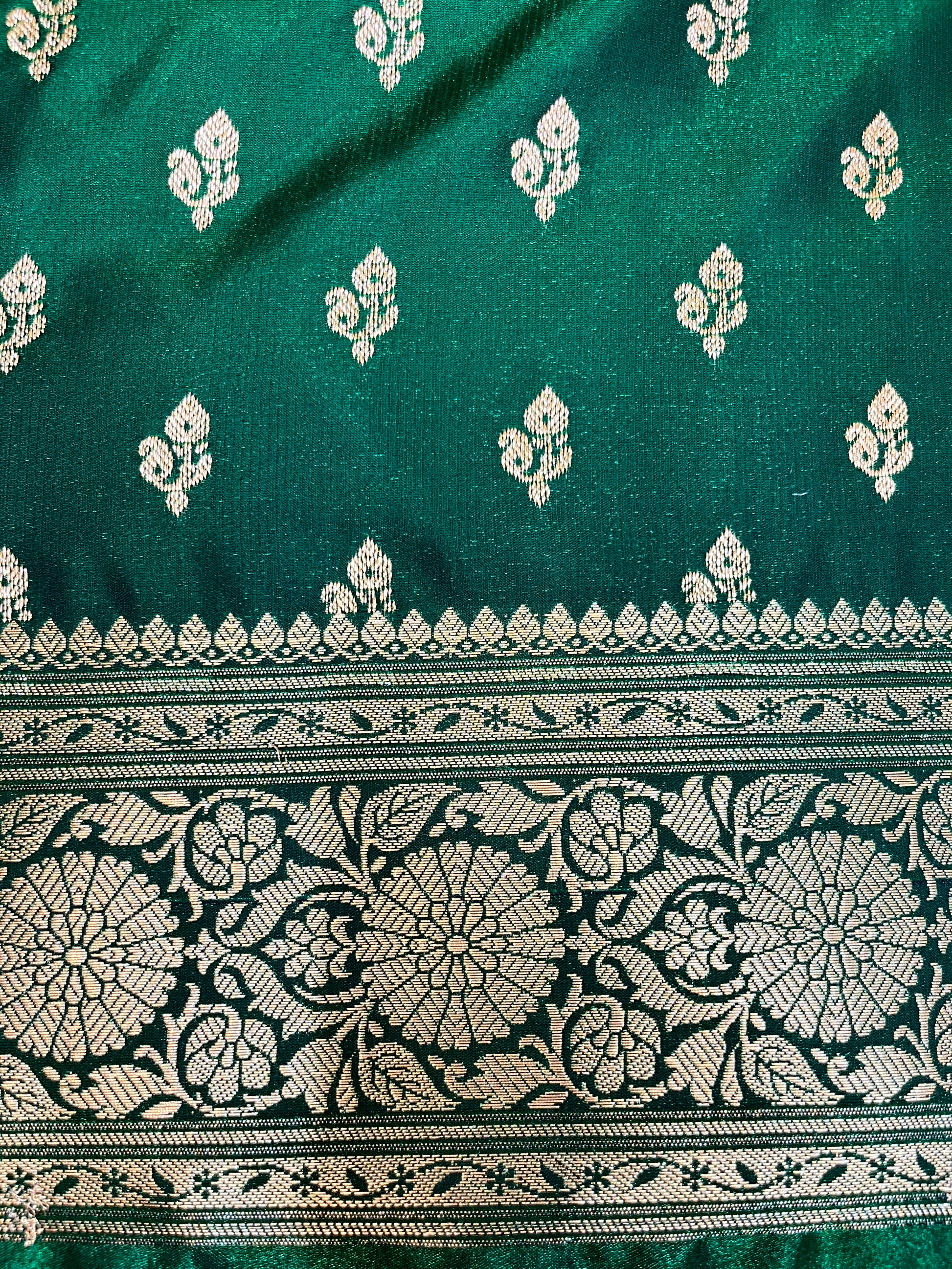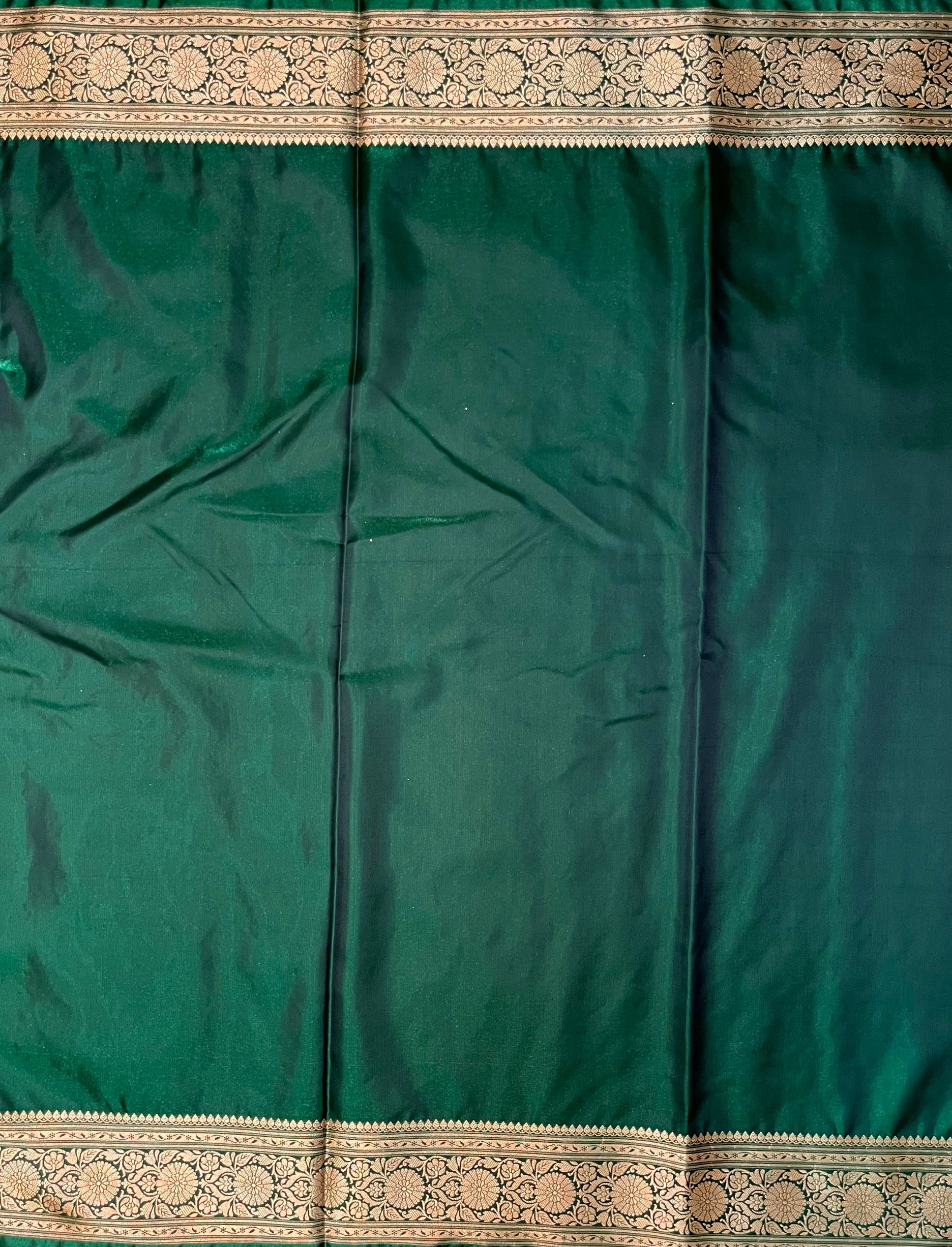 Dark Green Katan Banarasi Saree with Gold Zari Floral Weaving And Grand Pallu B0651ds