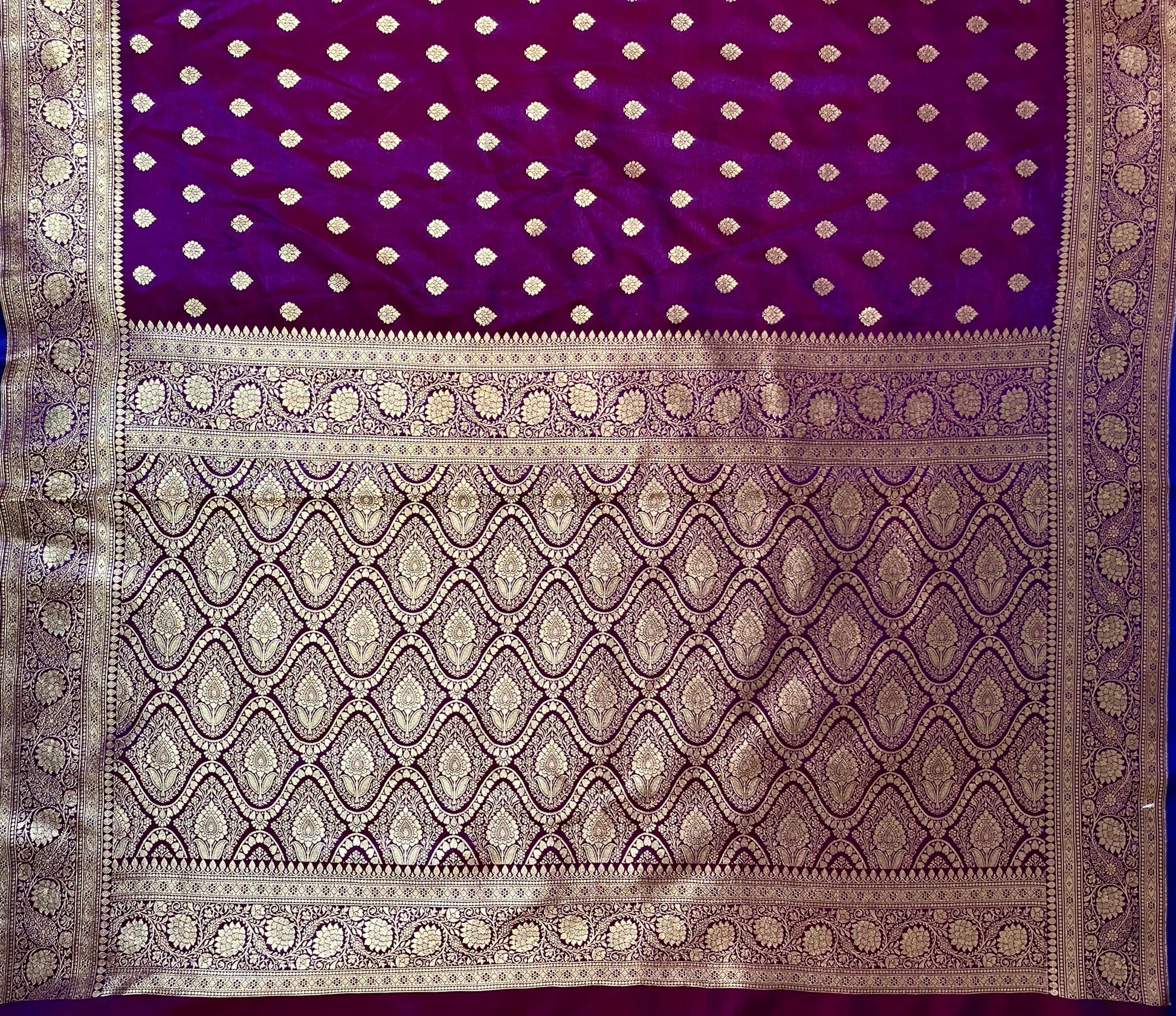 Dark Lavender Banaras Katan Silk Saree with Body Butti and Border Design