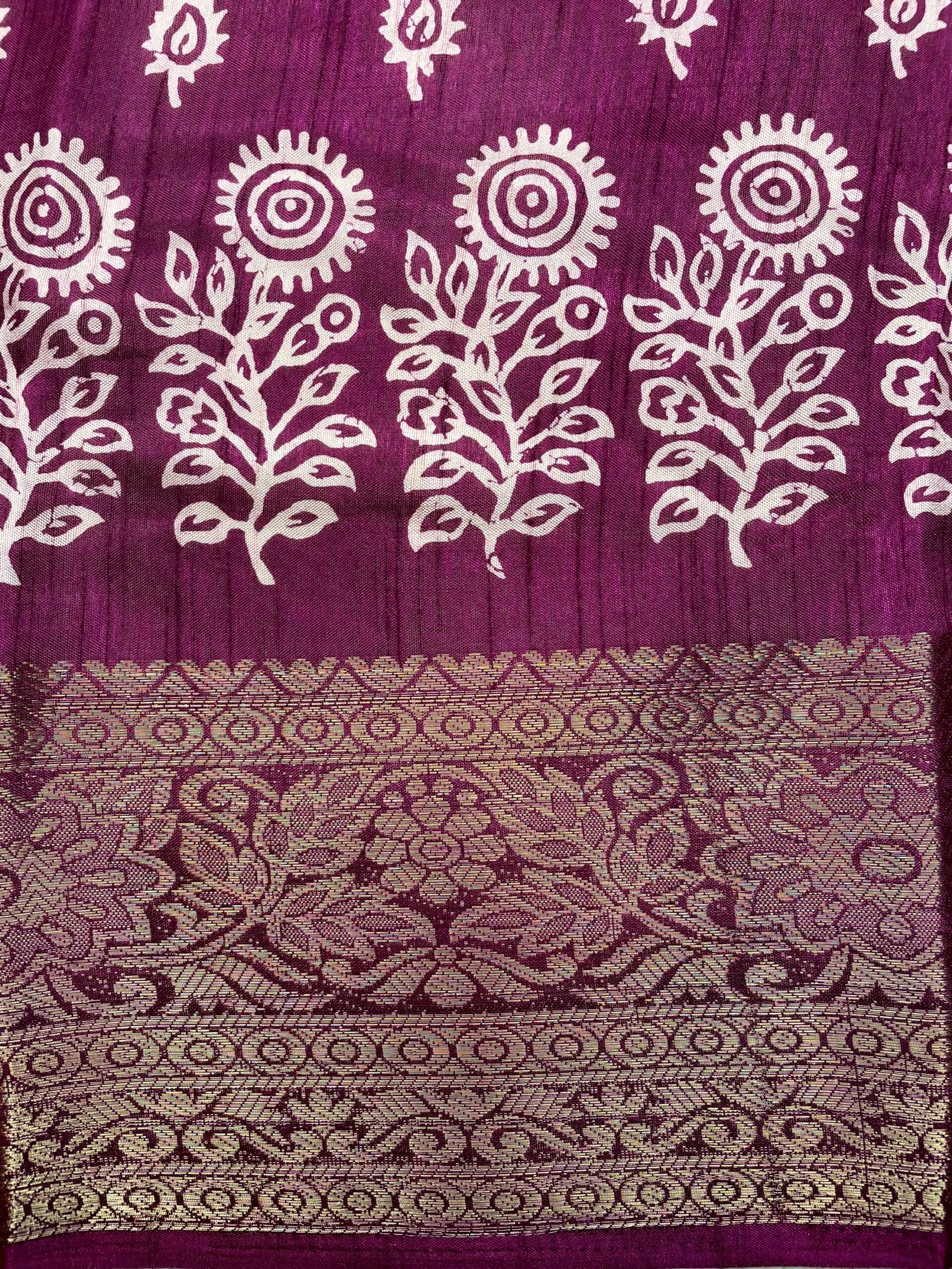 Dark Magenta Khadi Print Zari Border with Body and Pallow Design