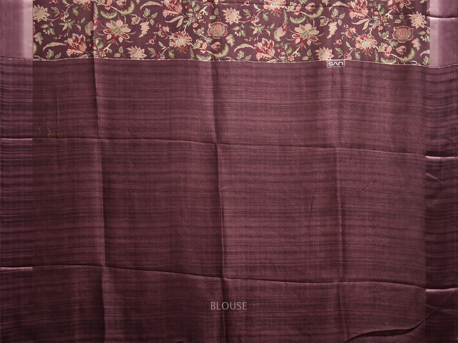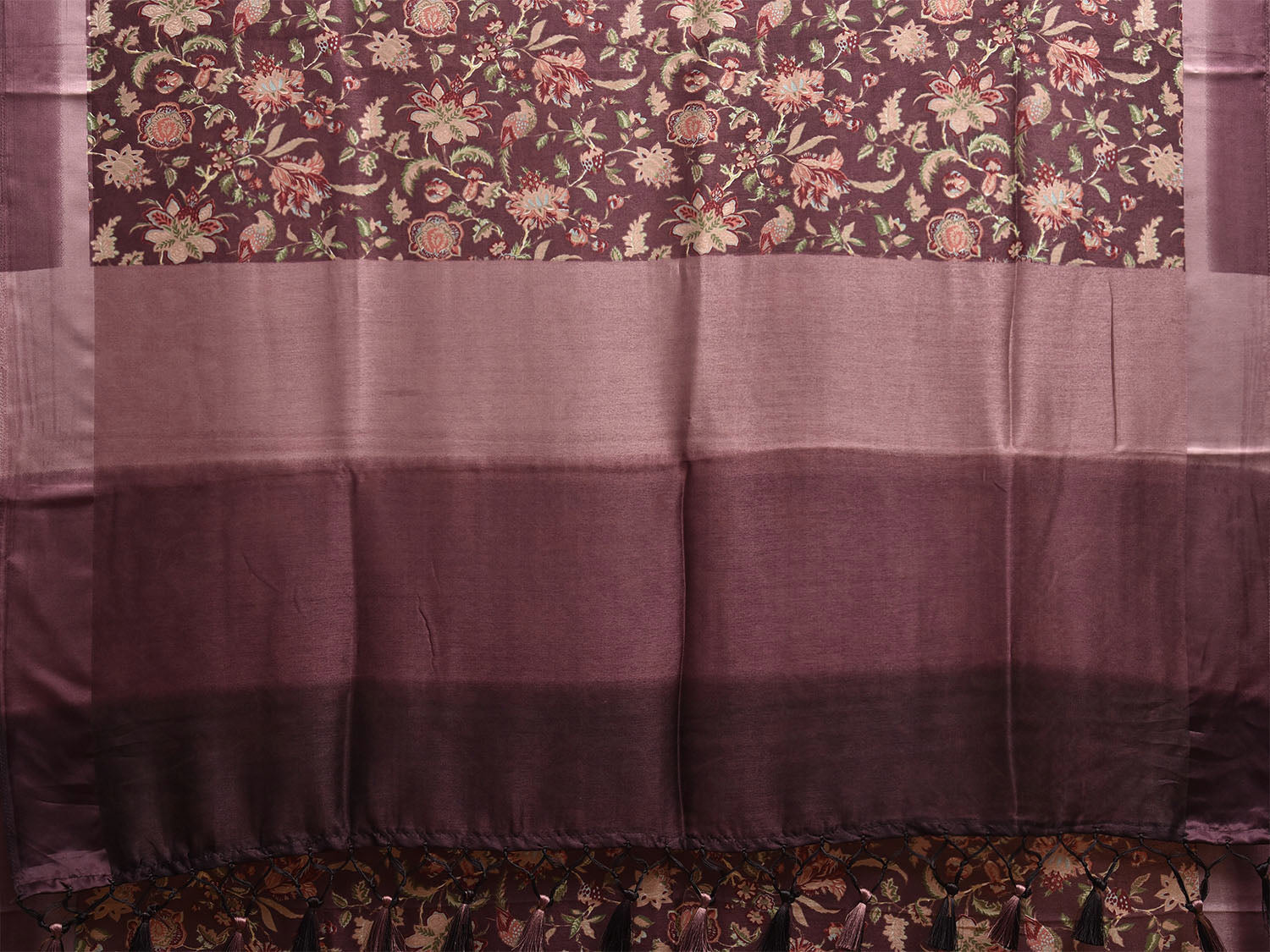 Dark Mauve Digital Print Viscose Saree with Floral Body Design o0621