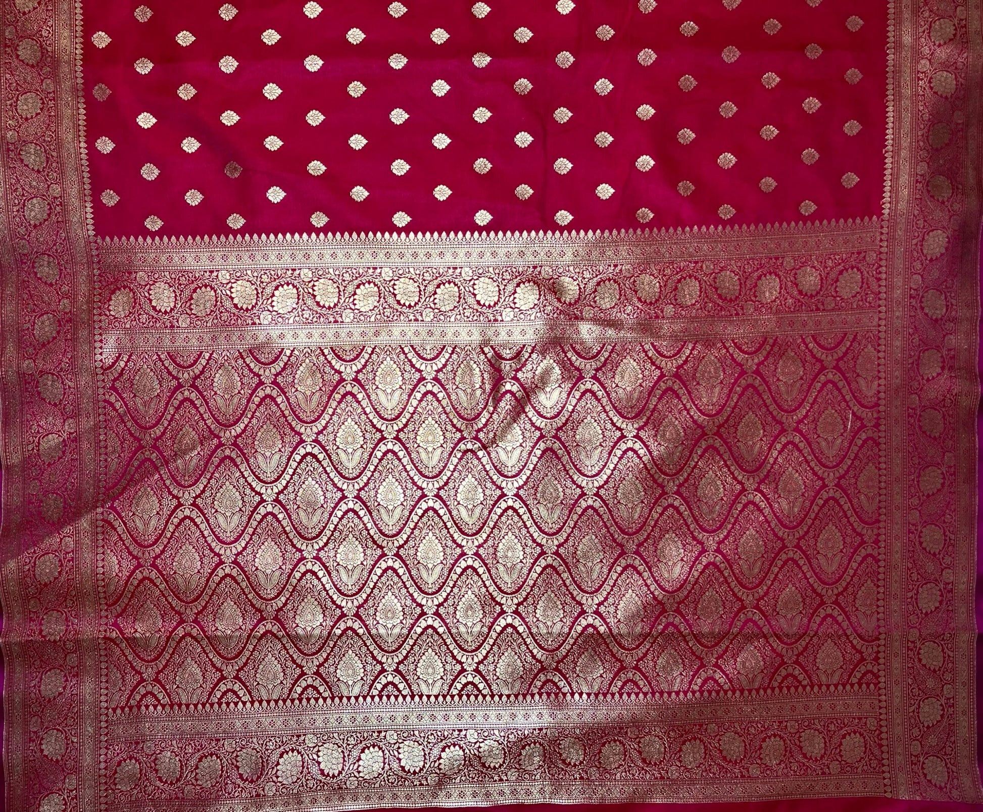 Dark Onion Pink Banaras Katan Silk Saree with Body Butti and Border Design