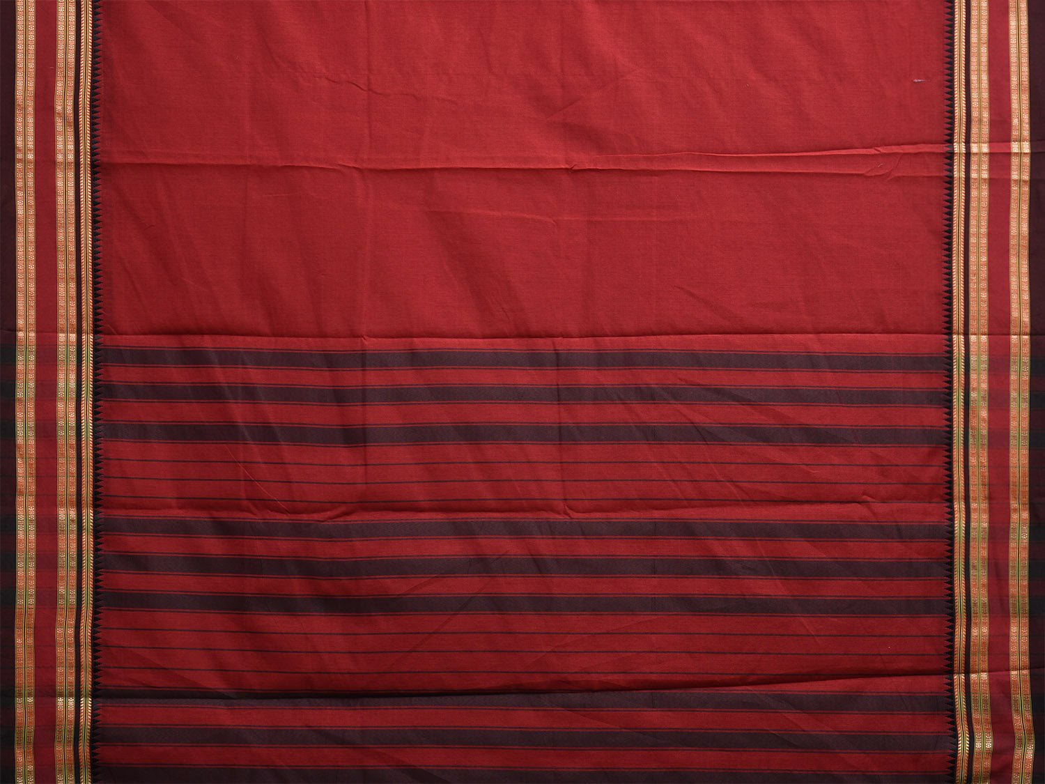 Dark Red and Black Bamboo Cotton Plain Saree with Strips Pallu Design No Blouse. This is a blend of bamboo and cotton fibers, they have characteristics of both bamboo and cotton combined into one fabric. We Advise Gentle Handwash for Fabric Care. This Saree has no Blouse.