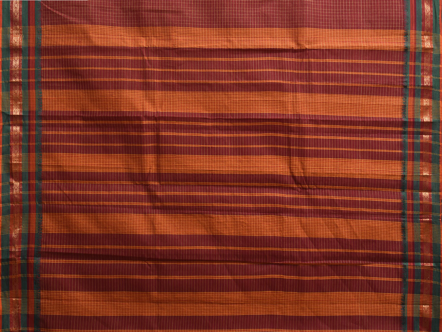 Dark Red and Green Narayanpet Cotton Saree with Checks and Strips Pallu Design No Blouse np1235