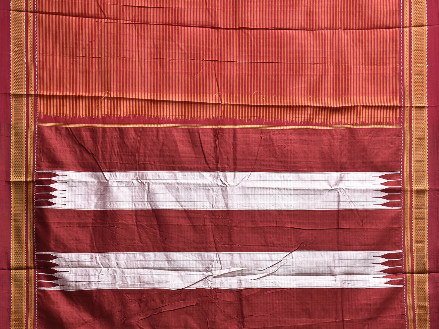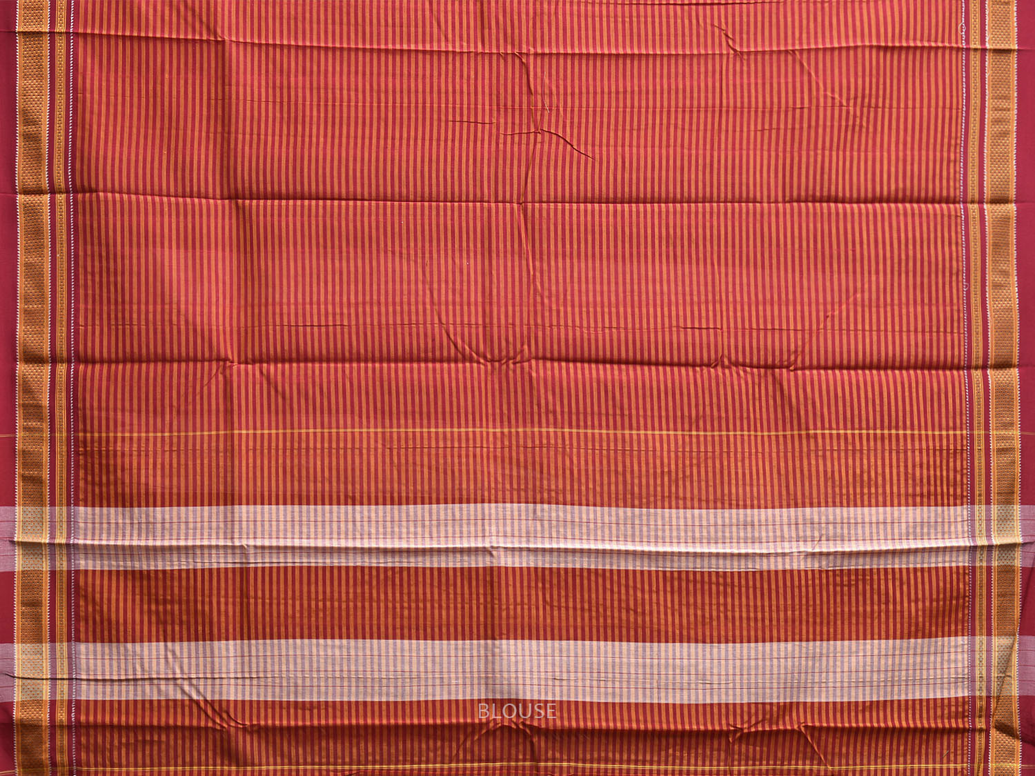 Dark Red and Orange ilkal Cotton Saree with Strips Body and Border Design o0688