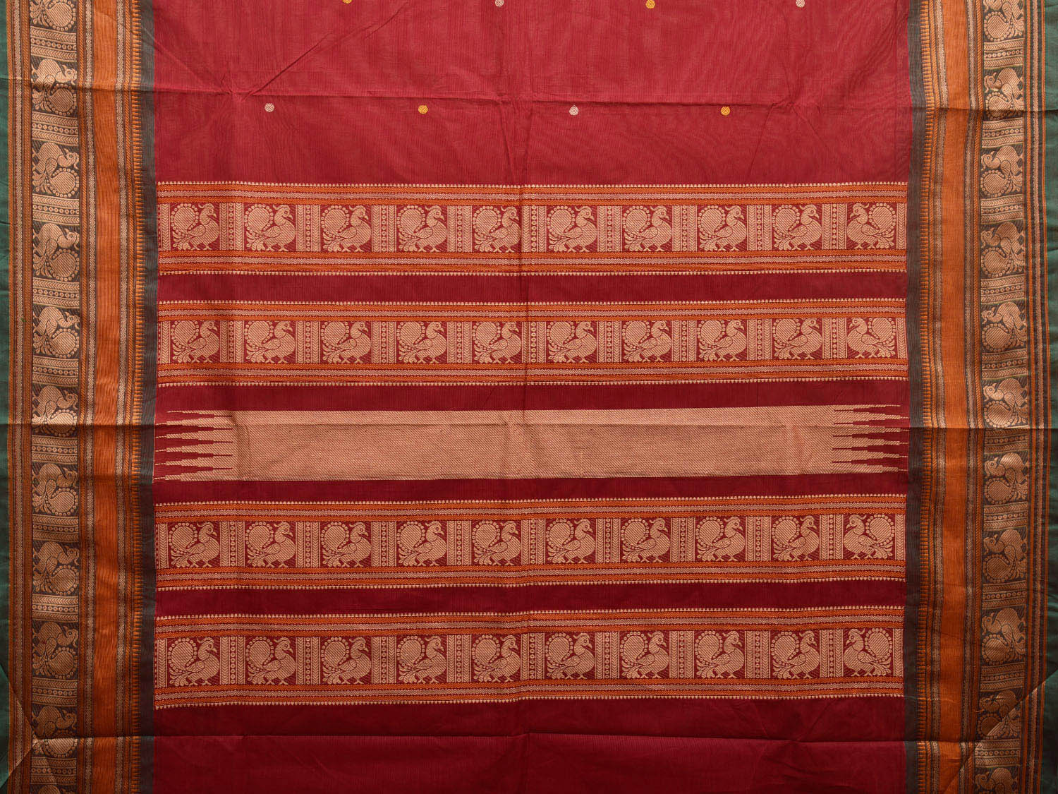 Dark Red Kanchipuram Cotton Saree with Peacock Pallu and Border Design k0702