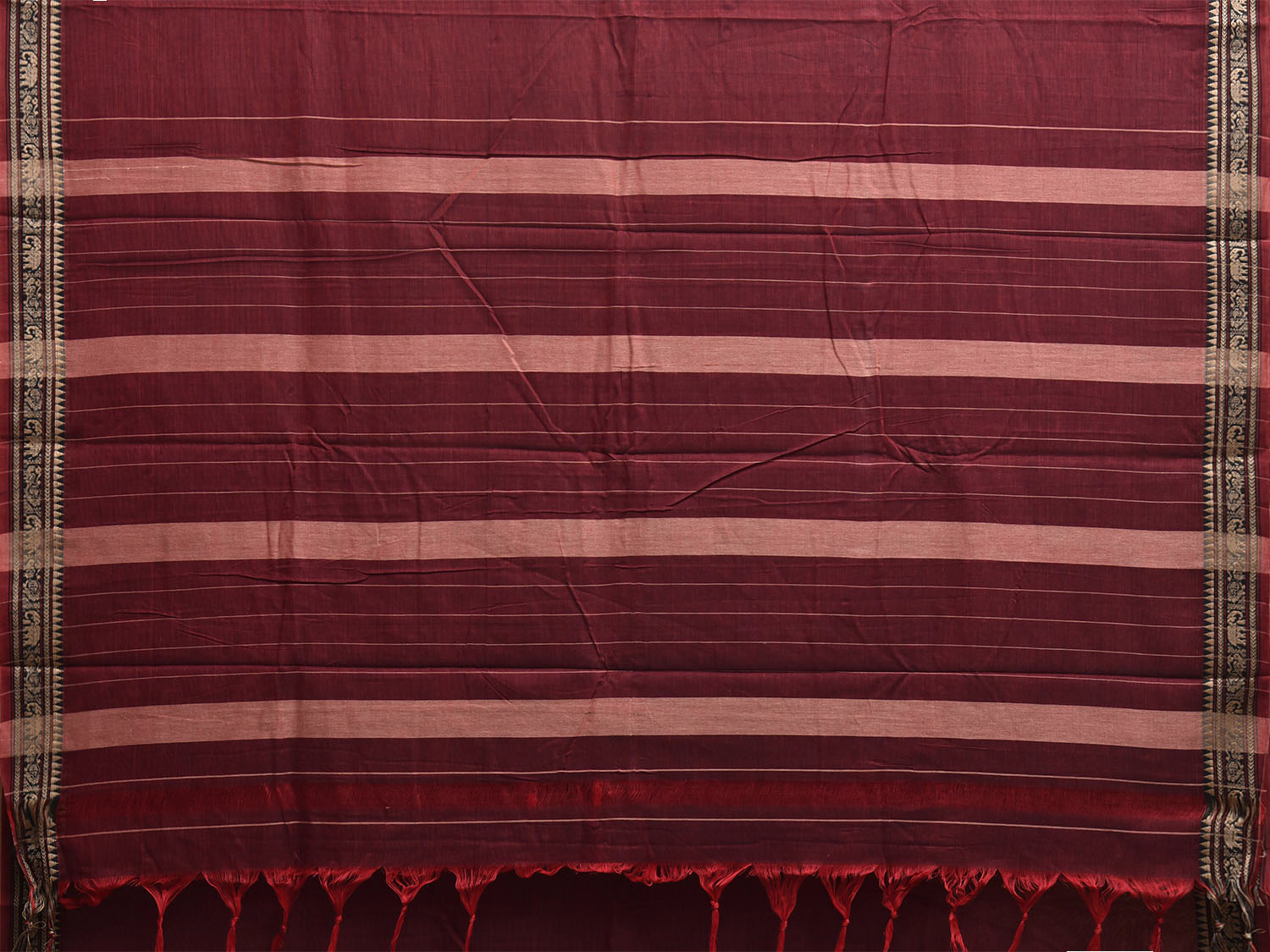 Dark Red Narayanpet Cotton Plain Saree with Border and Strips Pallu Design No Blouse