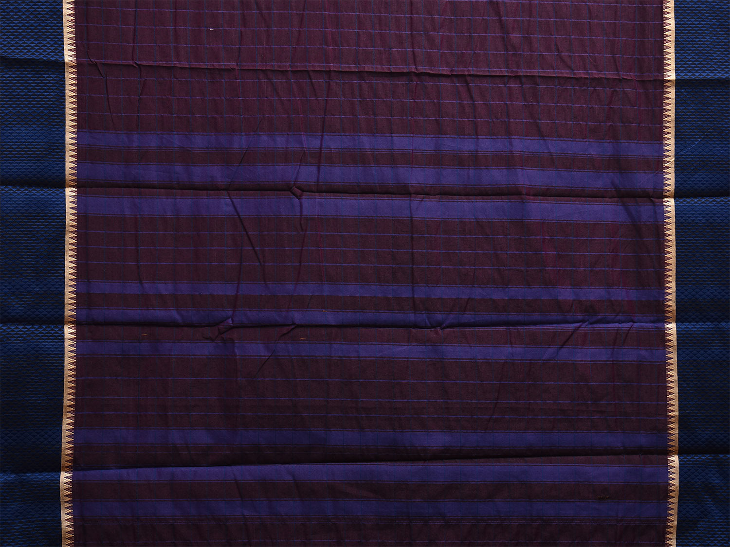 Dark Wine and Blue Bamboo Cotton Saree with Big Checks Design No Blouse. This is a blend of bamboo and cotton fibers, they have characteristics of both bamboo and cotton combined into one fabric. We Advise Gentle Handwash for Fabric Care. This Saree has no Blouse.