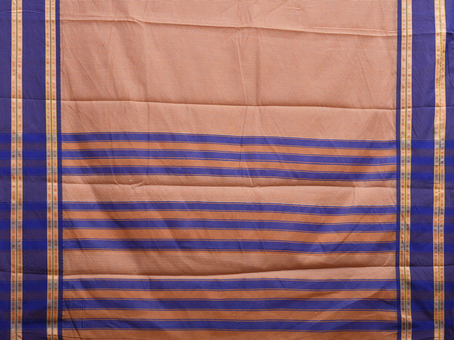 Fawn and Blue Bamboo Cotton Saree with Small Checks Design No Blouse bc0725