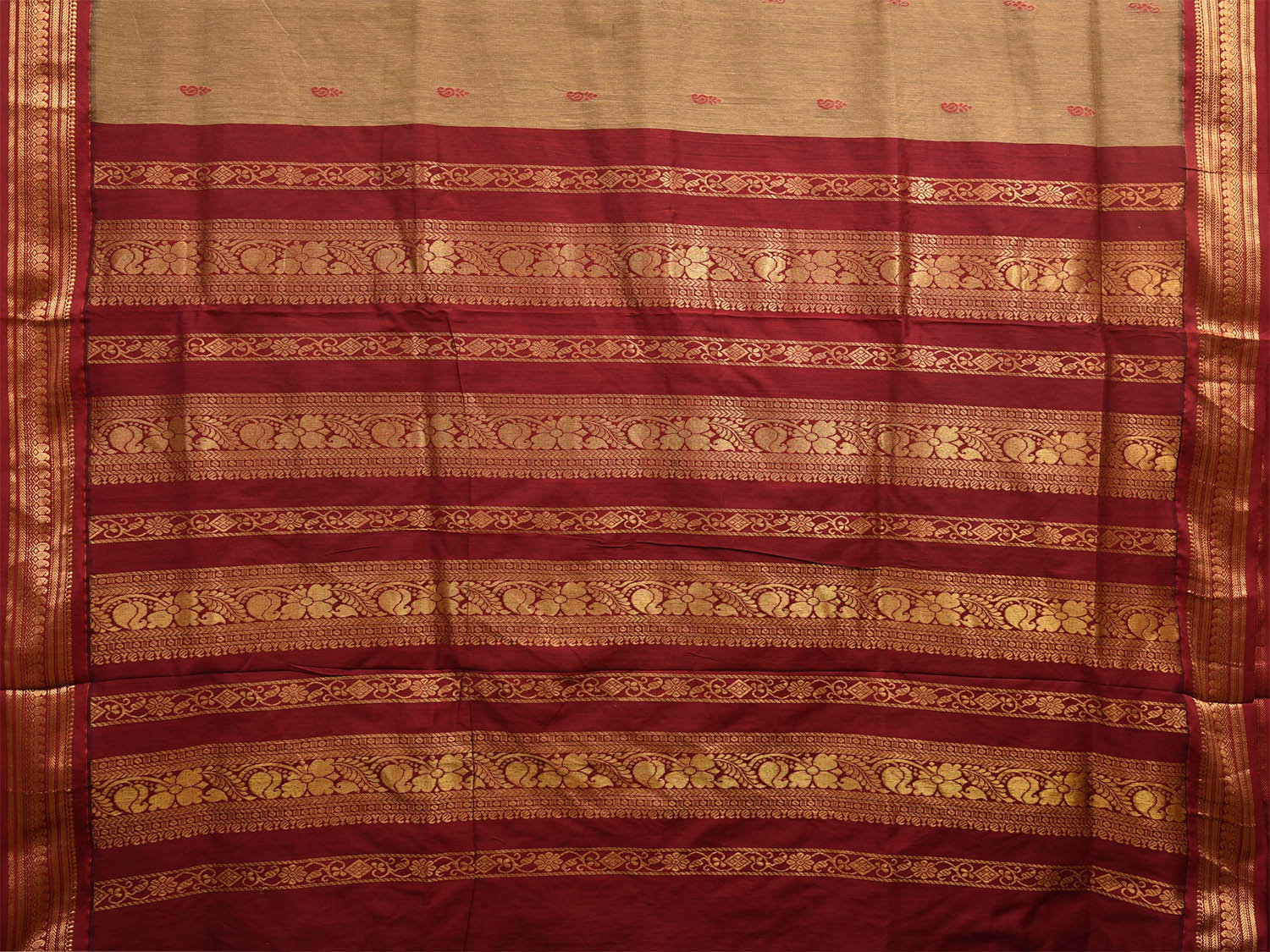 Fawn and Dark Red Gadwal Cotton Saree with Pallu and Border Design g0414