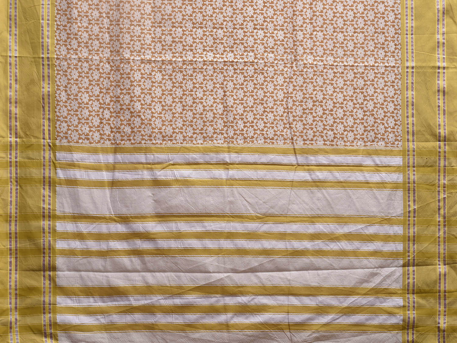 Fawn and Olive Bamboo Cotton Saree with All Over Floral Digital Print Design bc0899