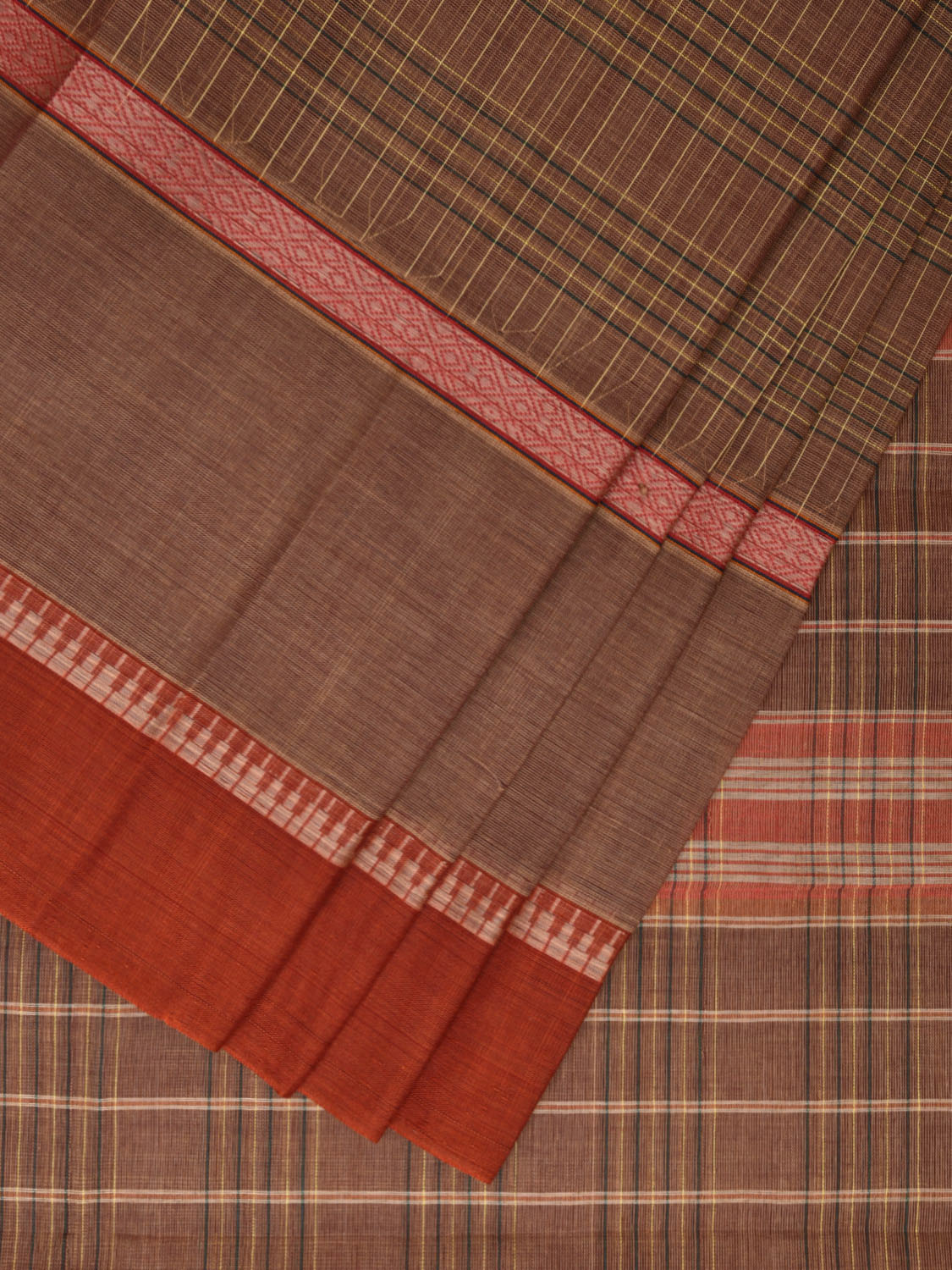 Fawn and Rust Narayanpet Cotton Handloom Saree with Checks Design No Blouse np0962