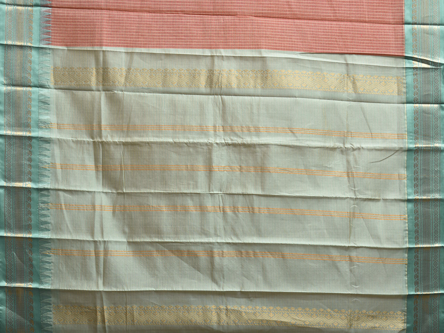 Fawn and Turquoise Gadwal Cotton Viscose Saree with Checks and Contrast Pallu Design No Blouse g0520
