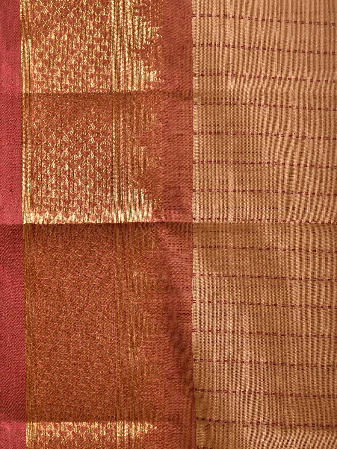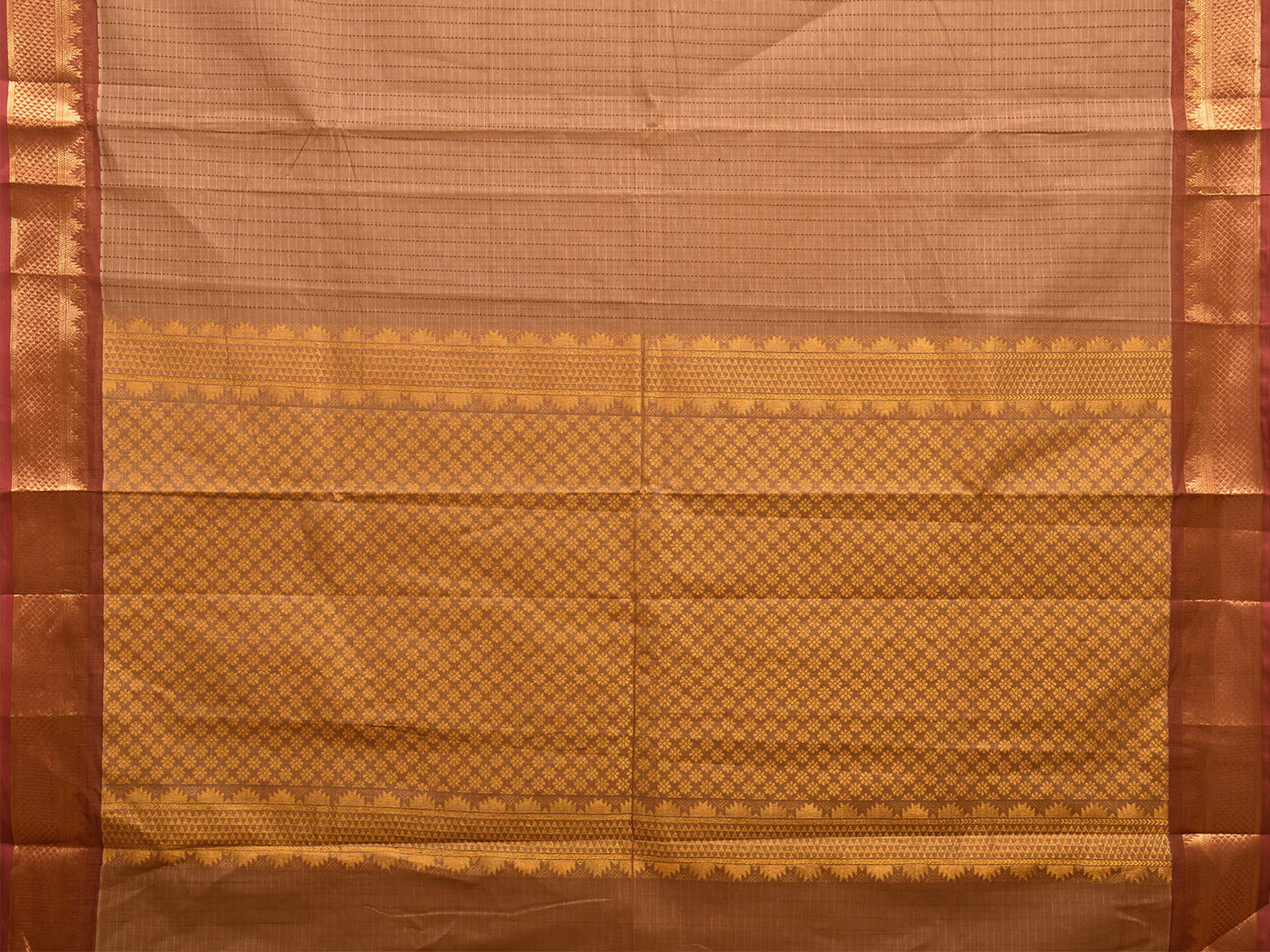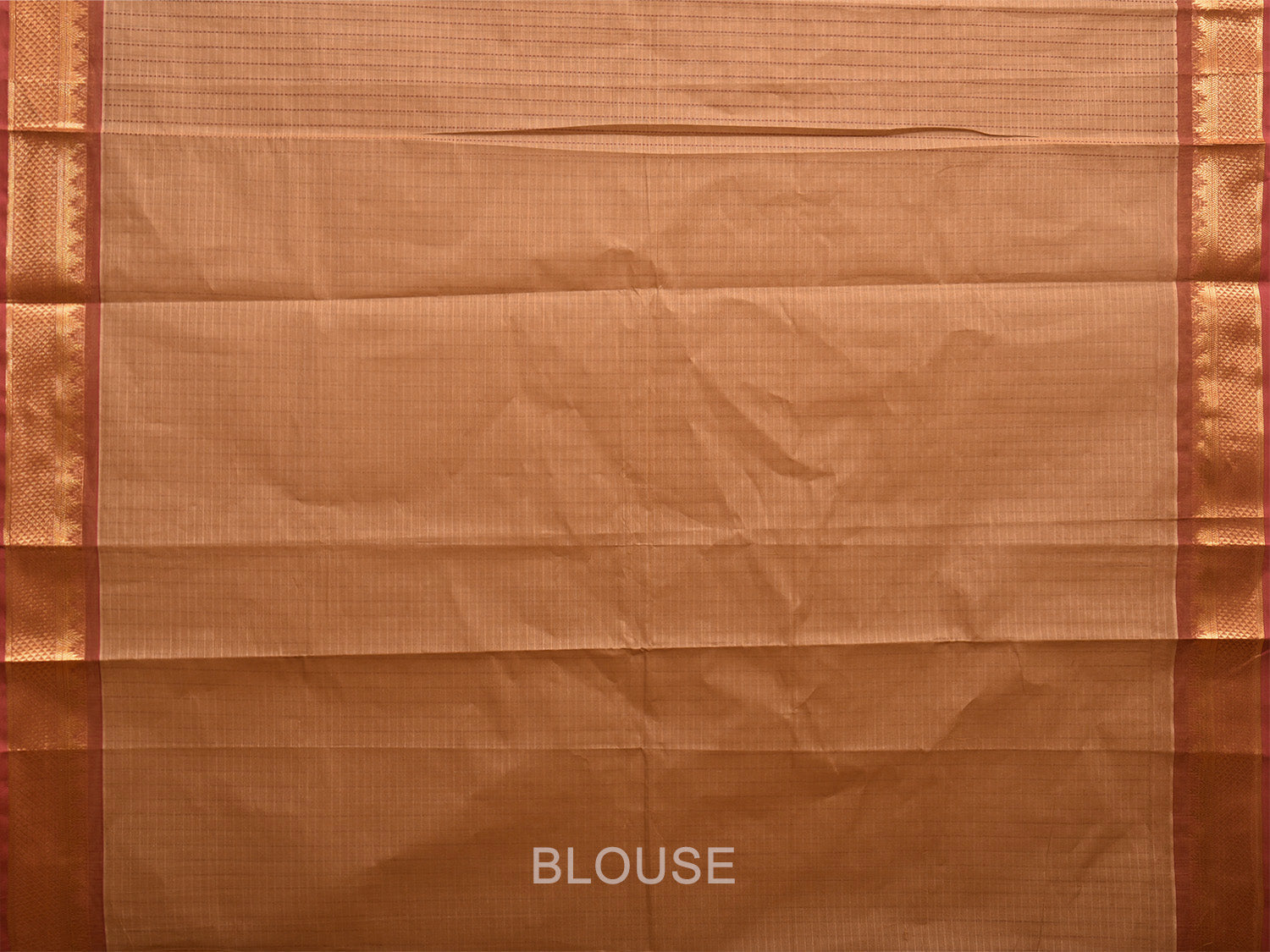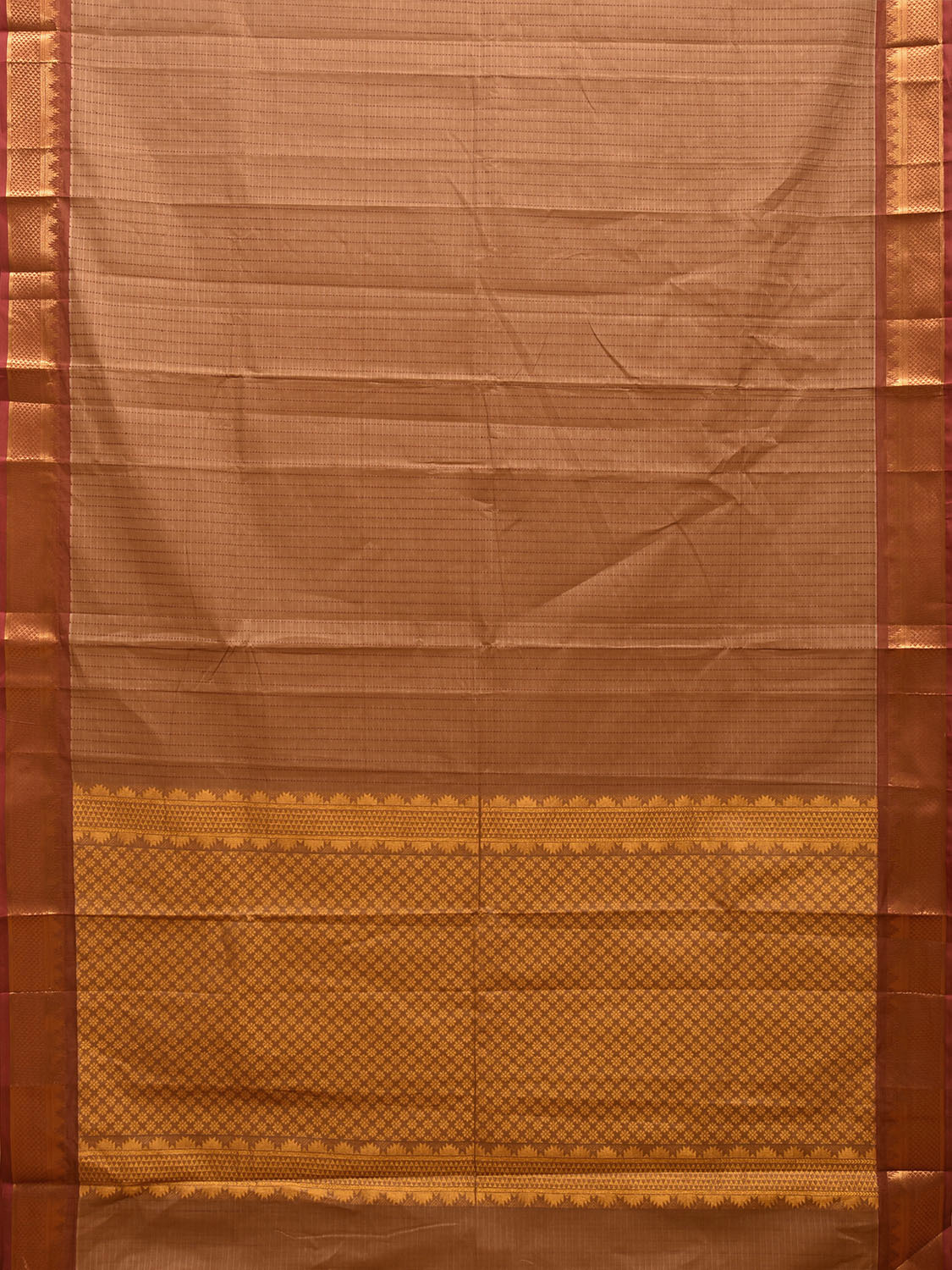 Fawn Kanchipuram Cotton Saree with Checks and Pallu Design k0676