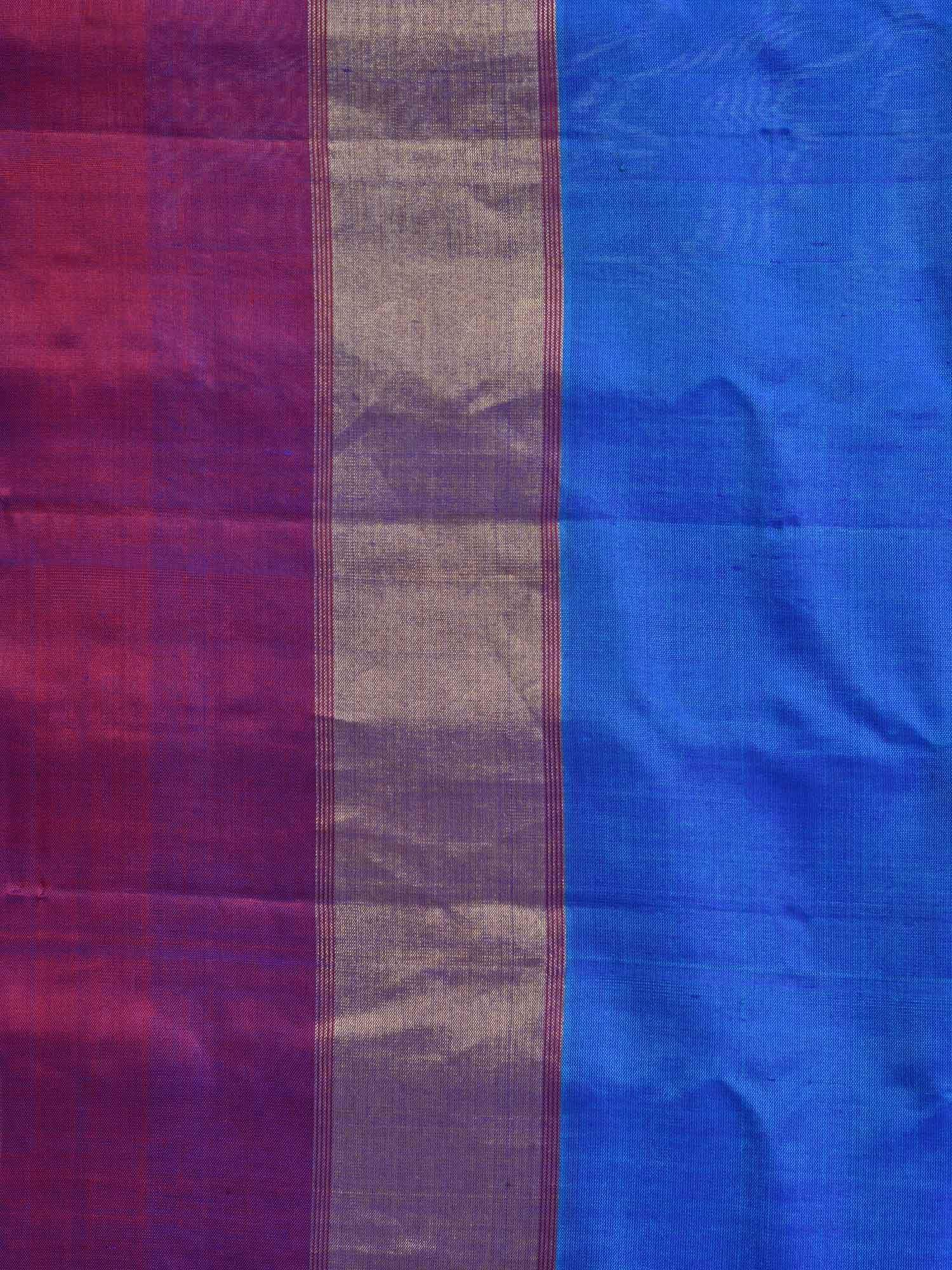 Blue Gadwal Silk Handloom Saree with Strips Border Design. Gadwal Sarees are known for their tradtional design of border and pallu made of silk and body being either cotton or silk. They are known as Sico sarees for border and pallu being silk and body being cotton. This is a Silk Saree.