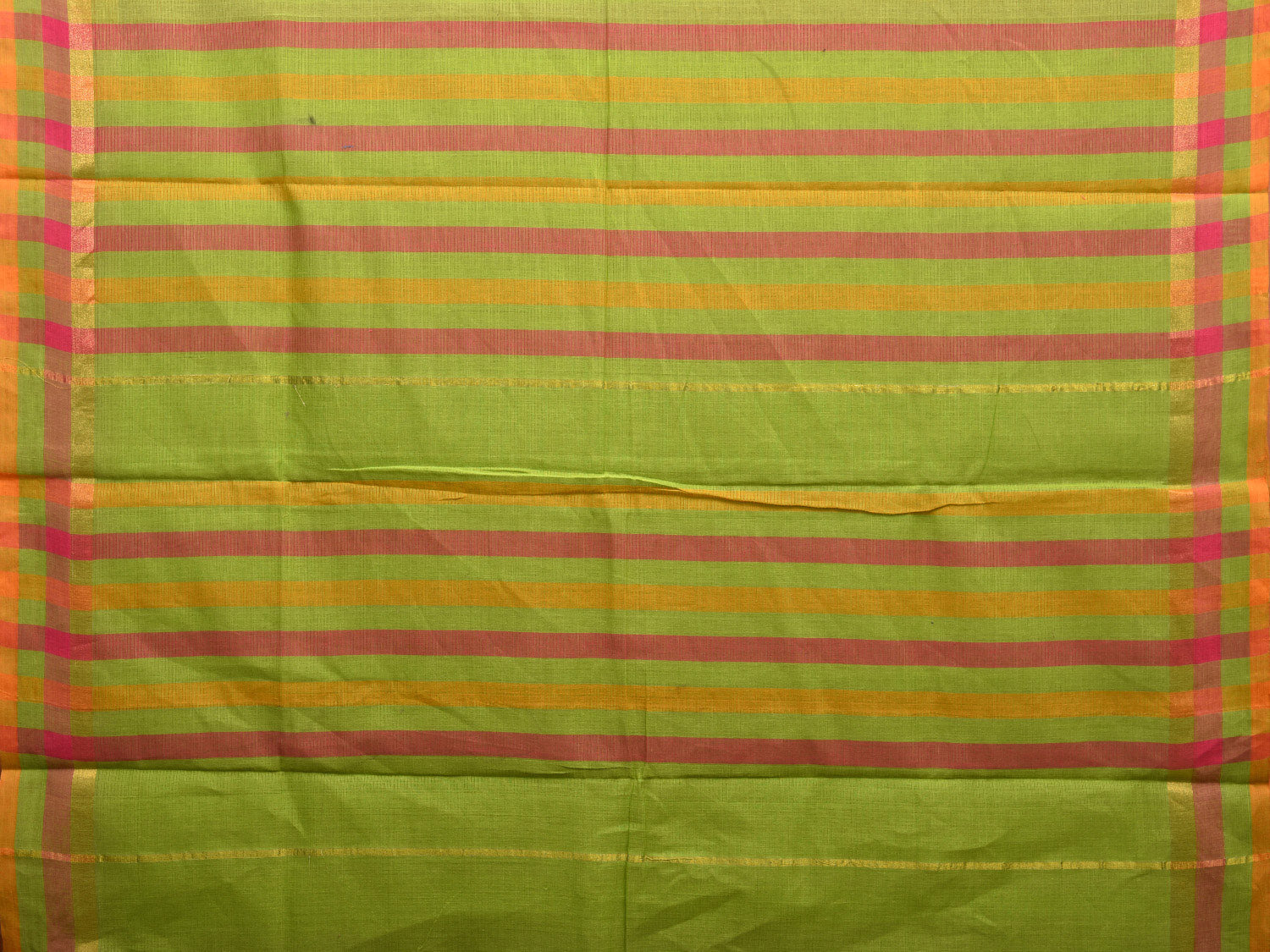 Green 80s Count Cotton Saree with Strips Design No Blouse o0481