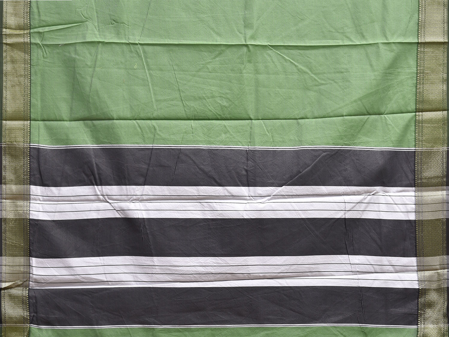 Green and Black Bamboo Cotton Saree with Strips Design No Blouse bc0995