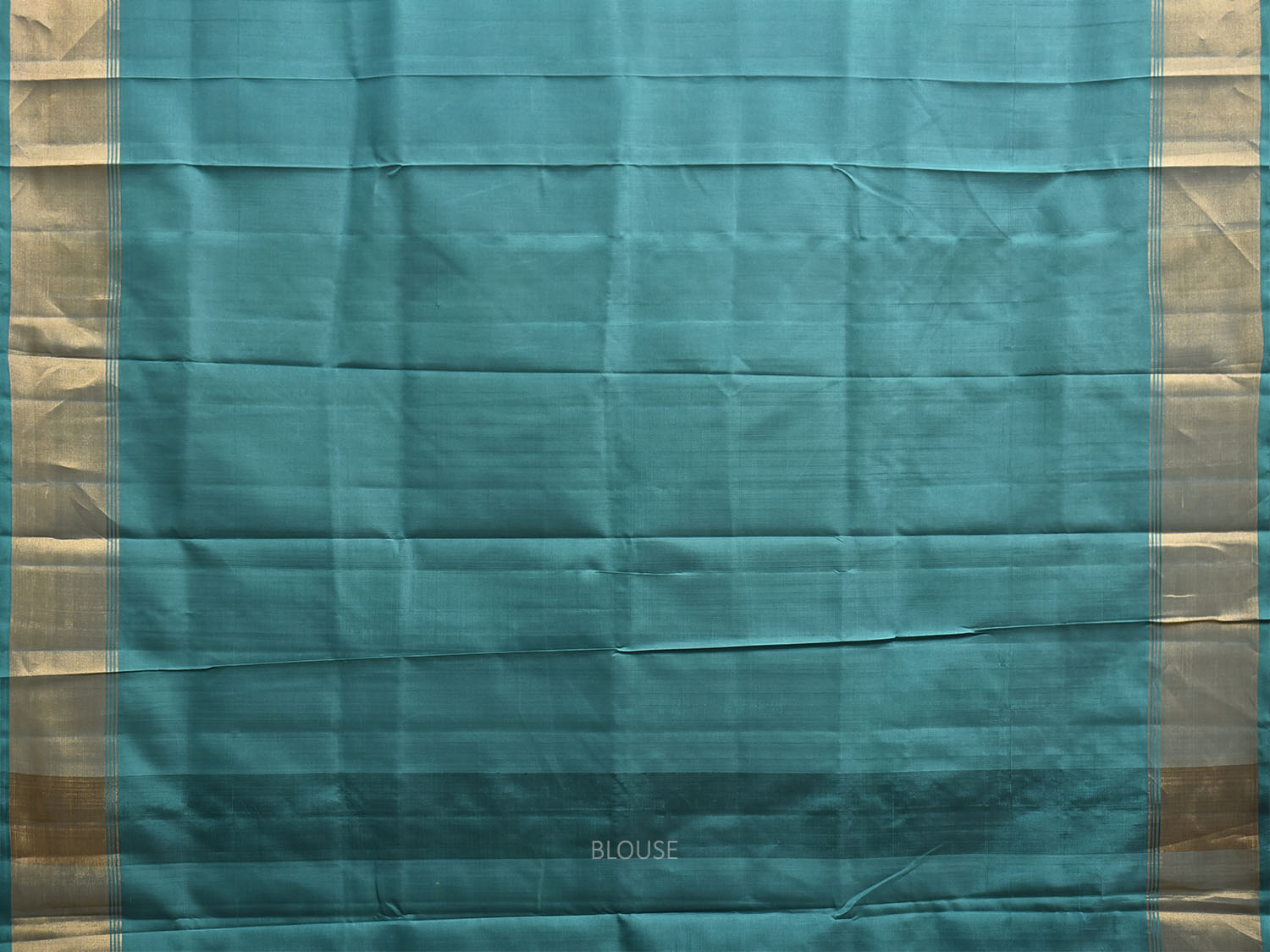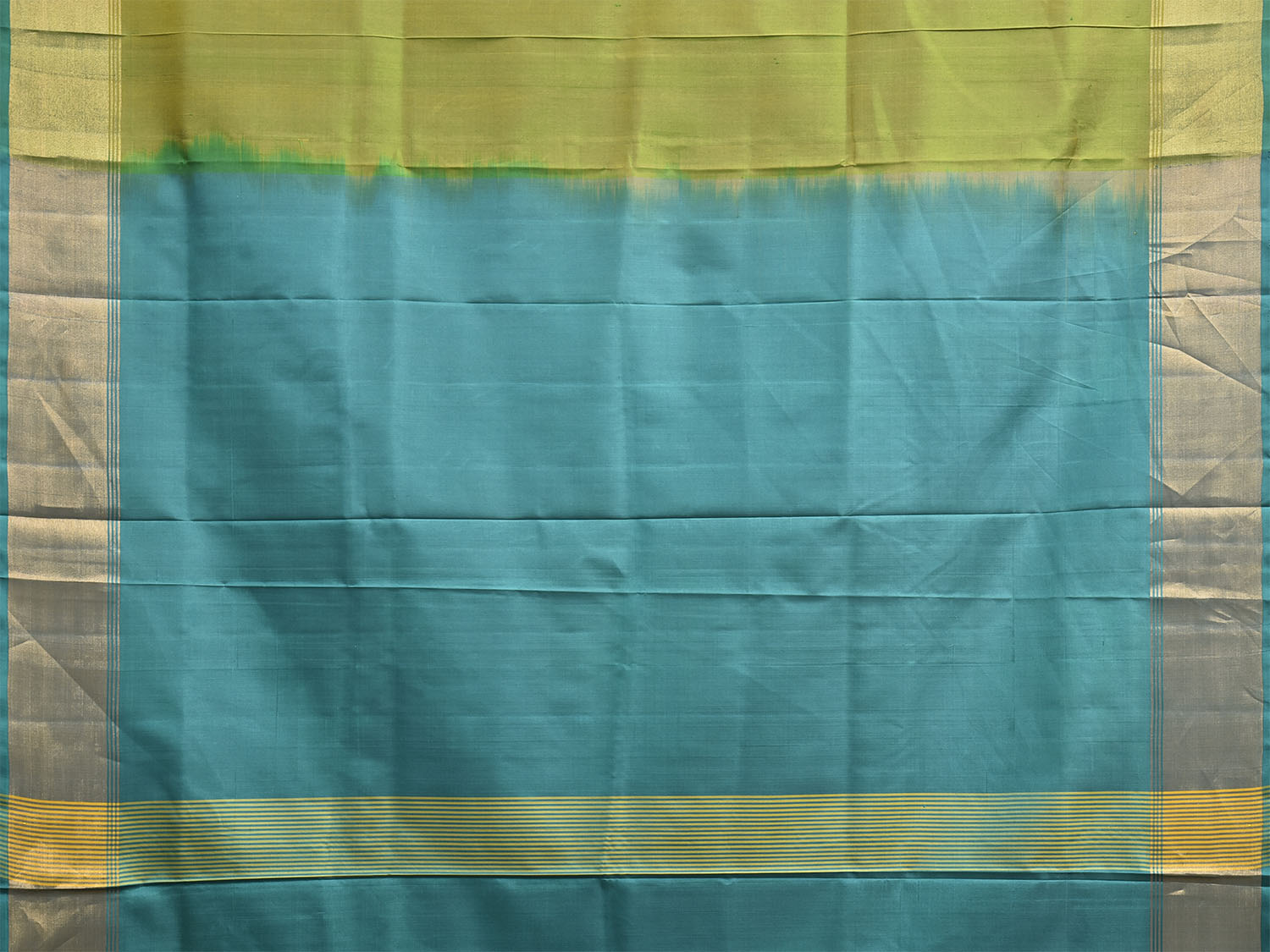 Green and Blue Uppada Silk Handloom Plain Saree with Contrast Pallu Design