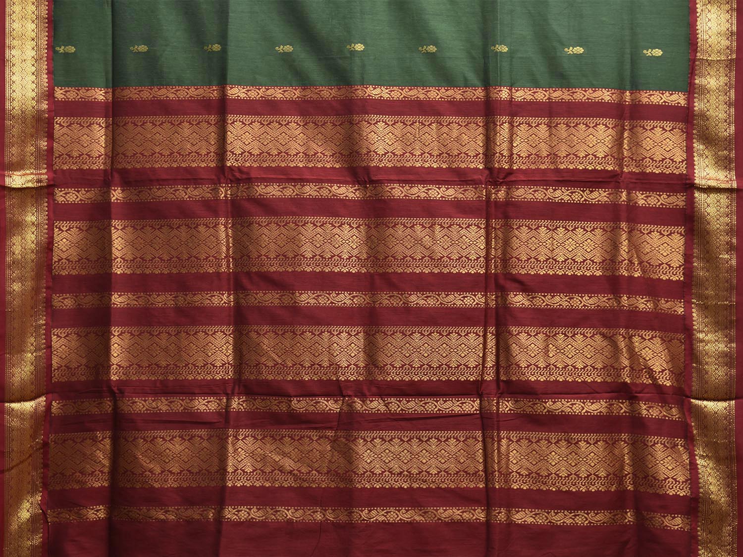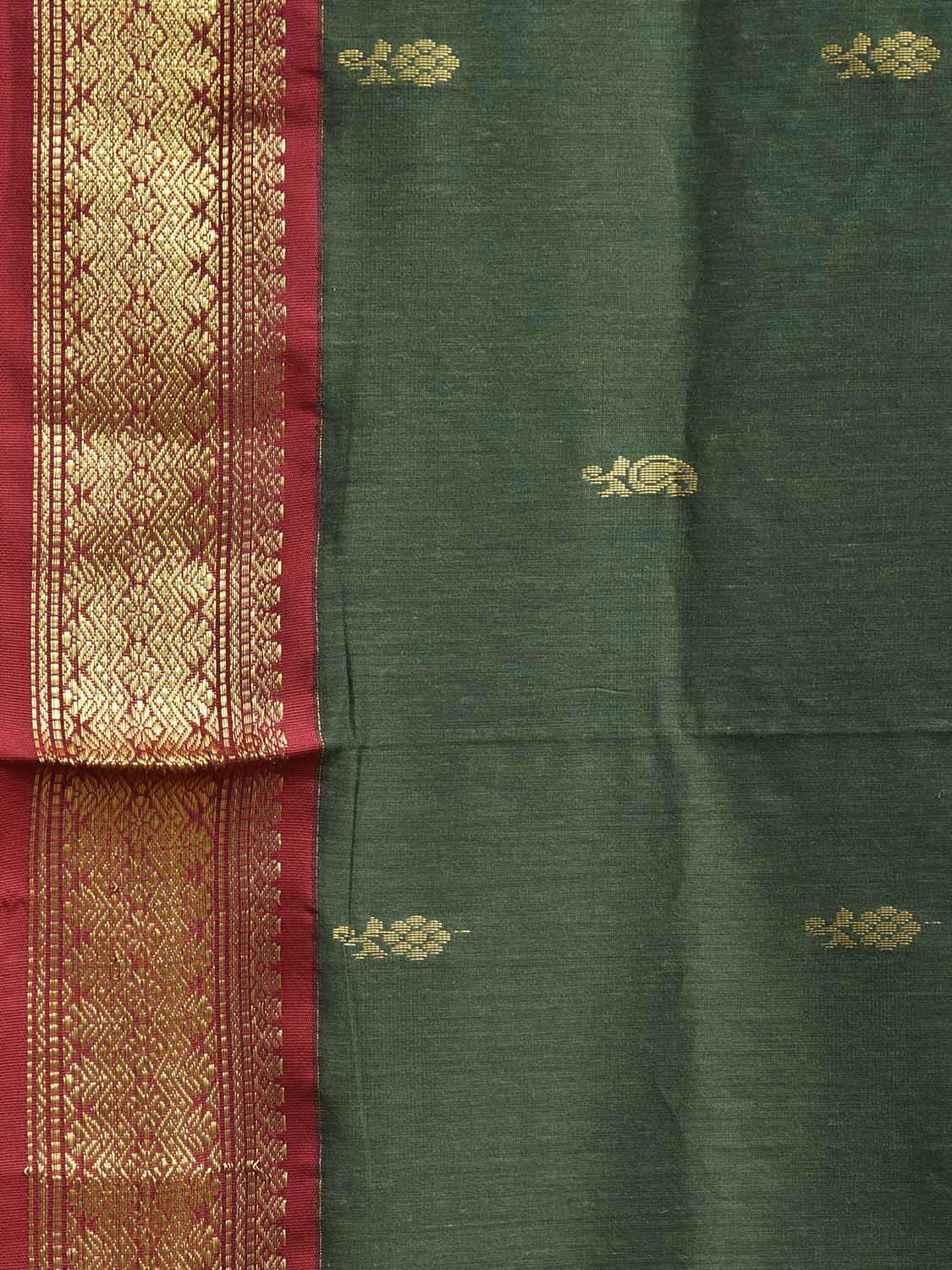Green and Dark Red Gadwal Cotton Viscose Saree with Pallu and Border Design g0497