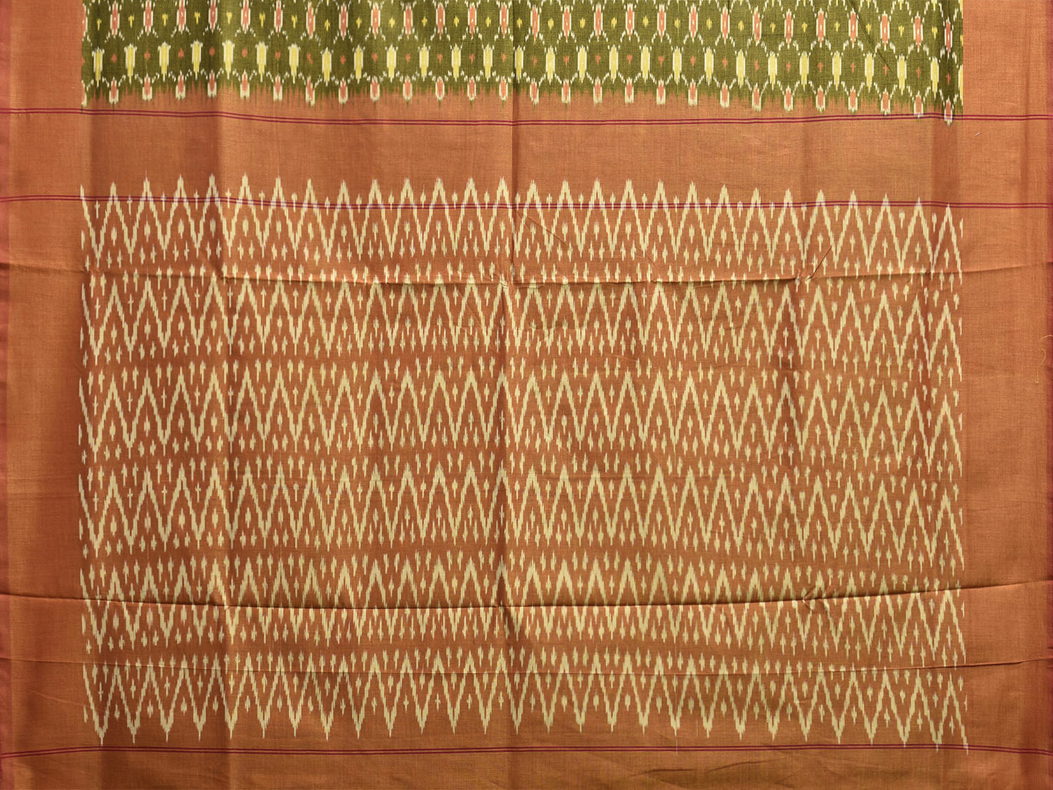Green and Light Orange Pochampally Ikat Cotton Handloom Saree with Grill Design No Blouse i0942