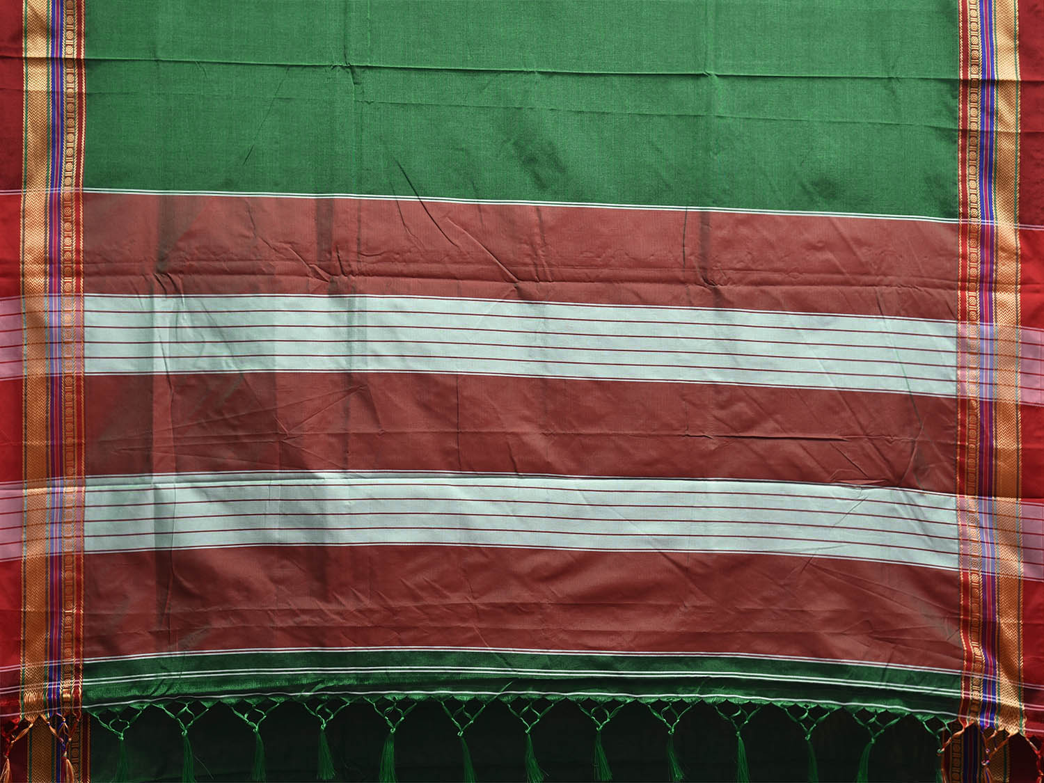 Green and Maroon ilkal Cotton Viscose Saree with Strips Pallu and Border Design No Blouse il0037
