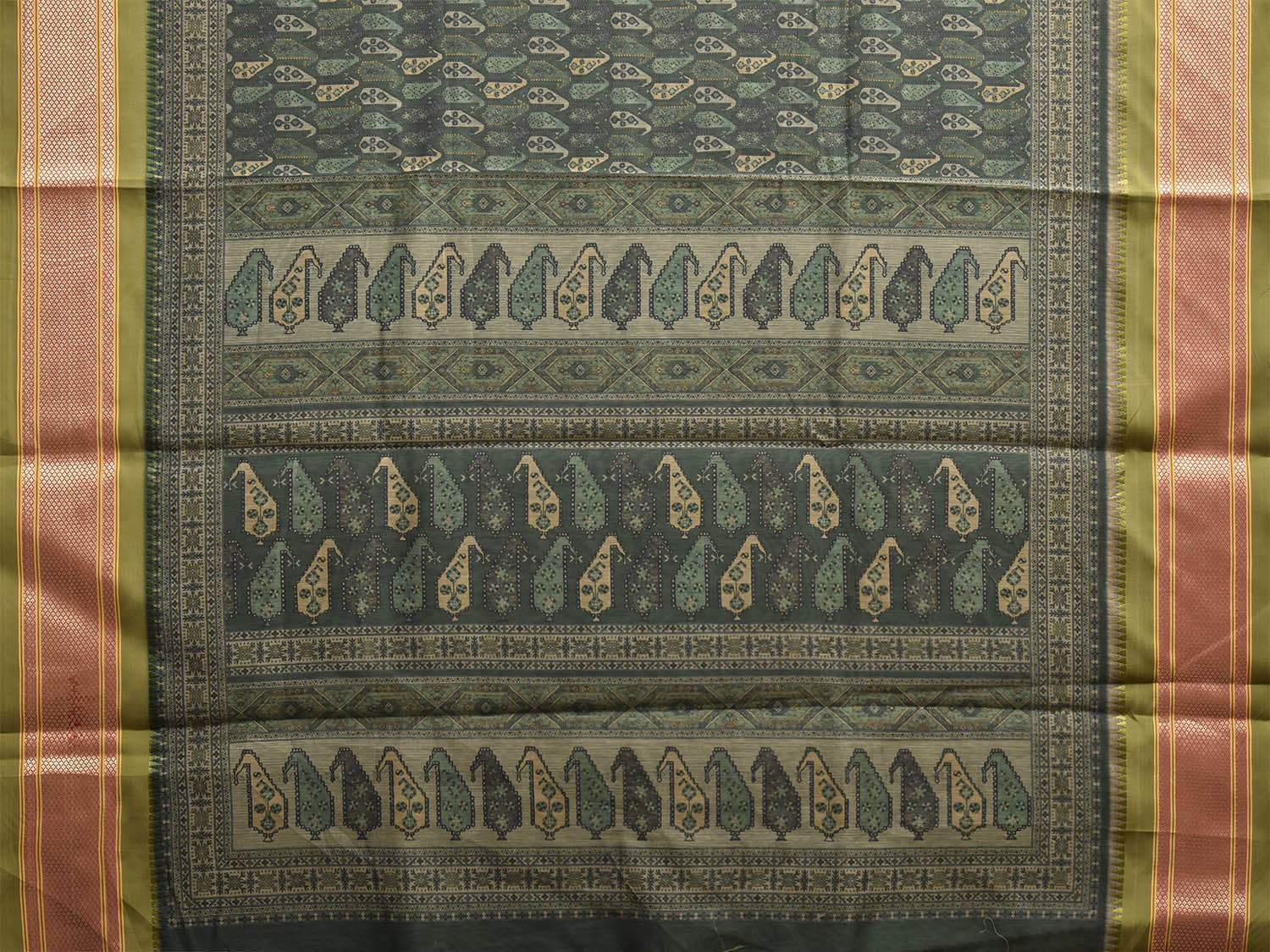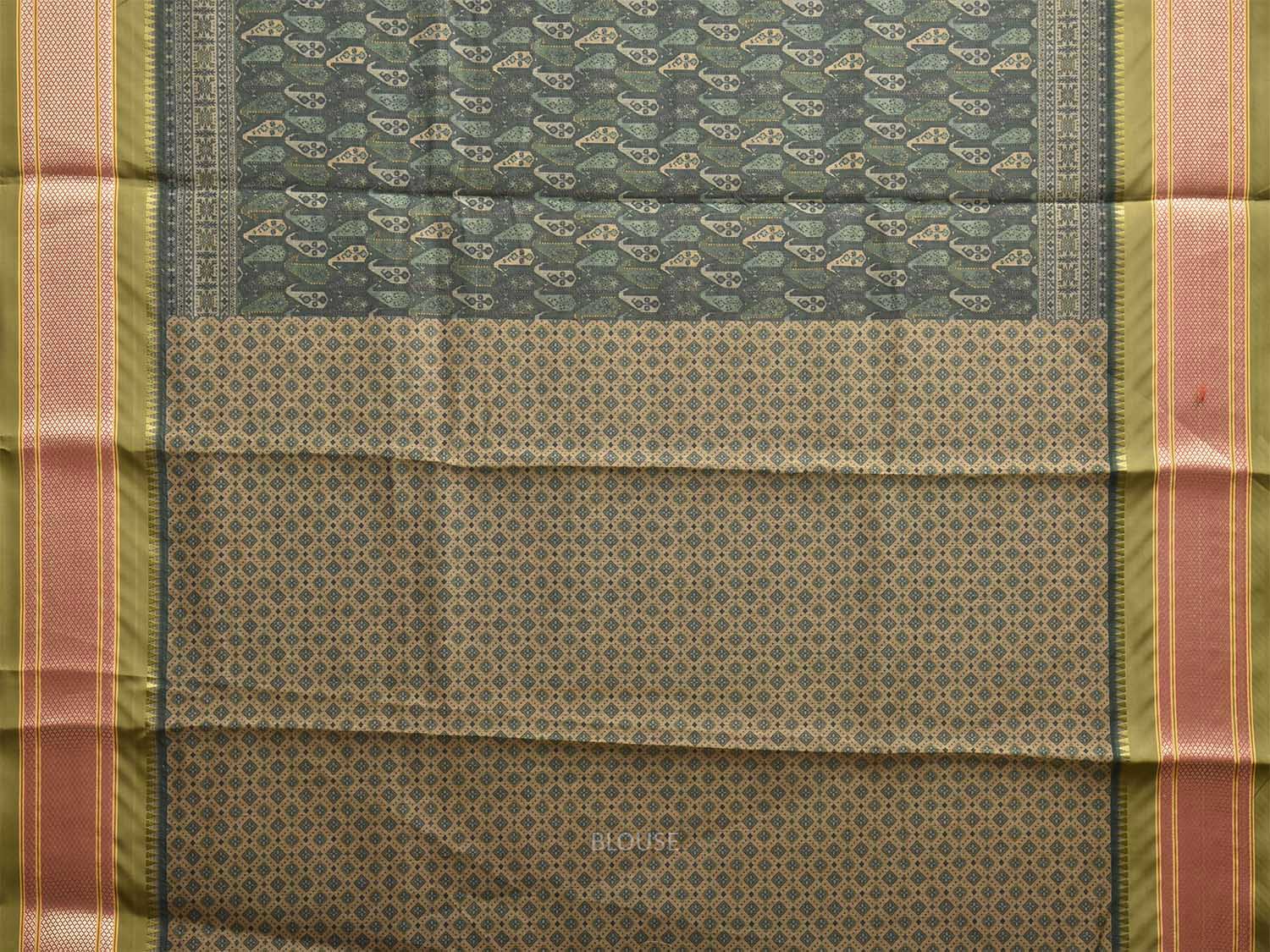 Green and Olive Bamboo Cotton Saree with Digital Print Design bc1011