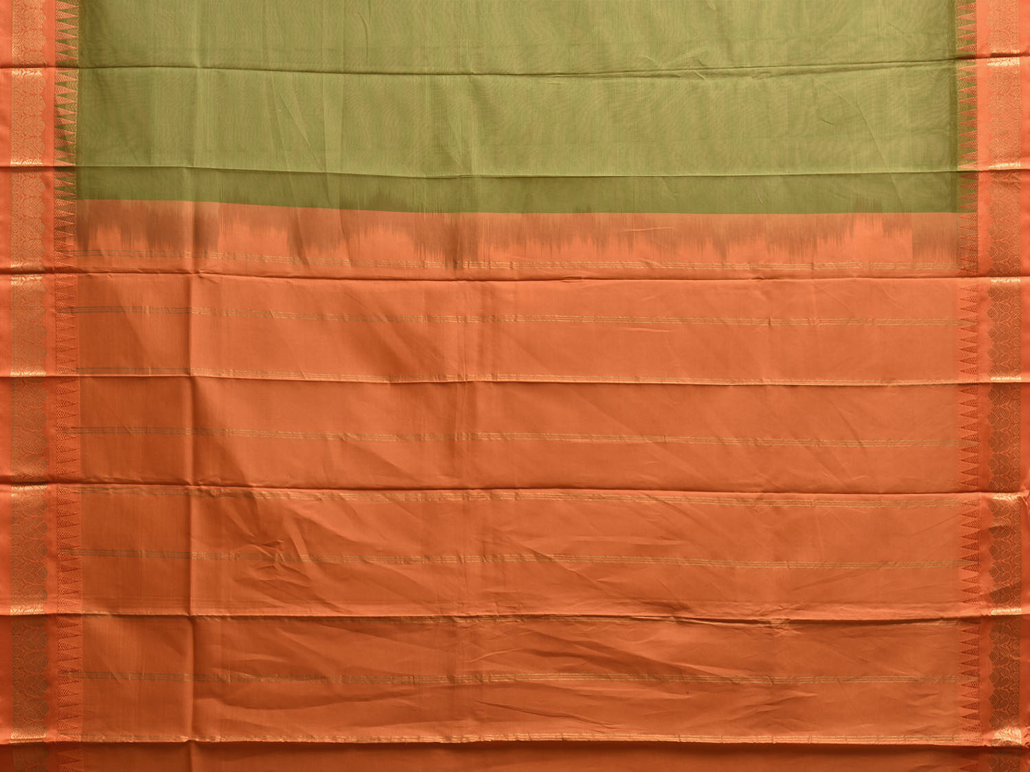 Green and Orange Gadwal Cotton Viscose Plain Saree with Contrast Pallu Design No Blouse g0515