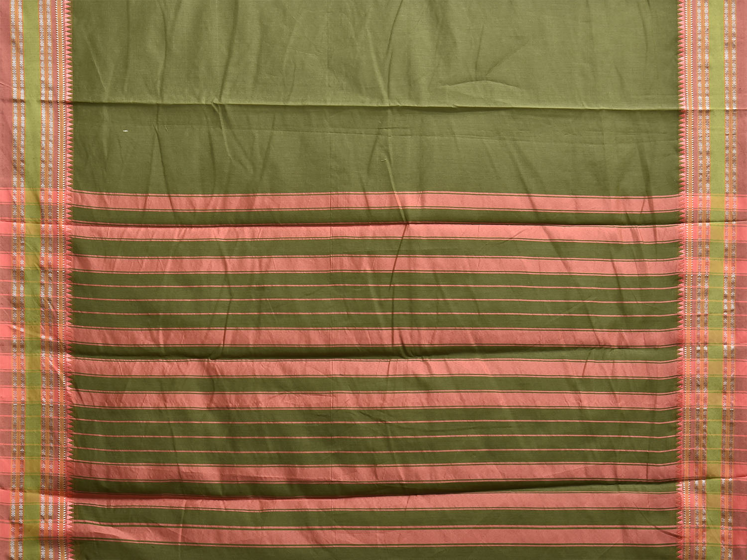 Green and Peach Bamboo Cotton Plain Saree with Strips Pallu Design No Blouse bc1028