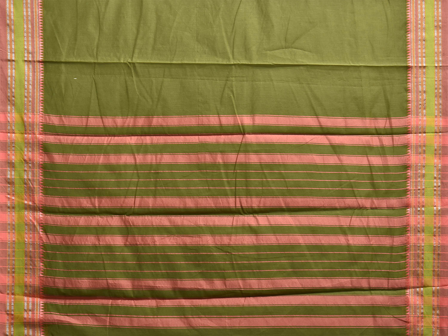 Green and Peach Bamboo Cotton Plain Saree with Strips Pallu Desing No Blouse bc1048
