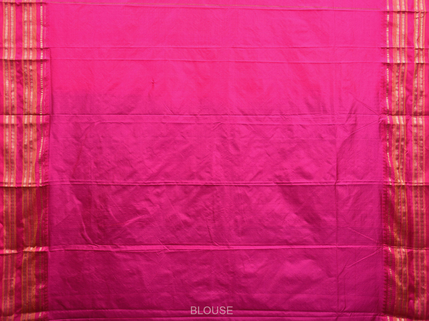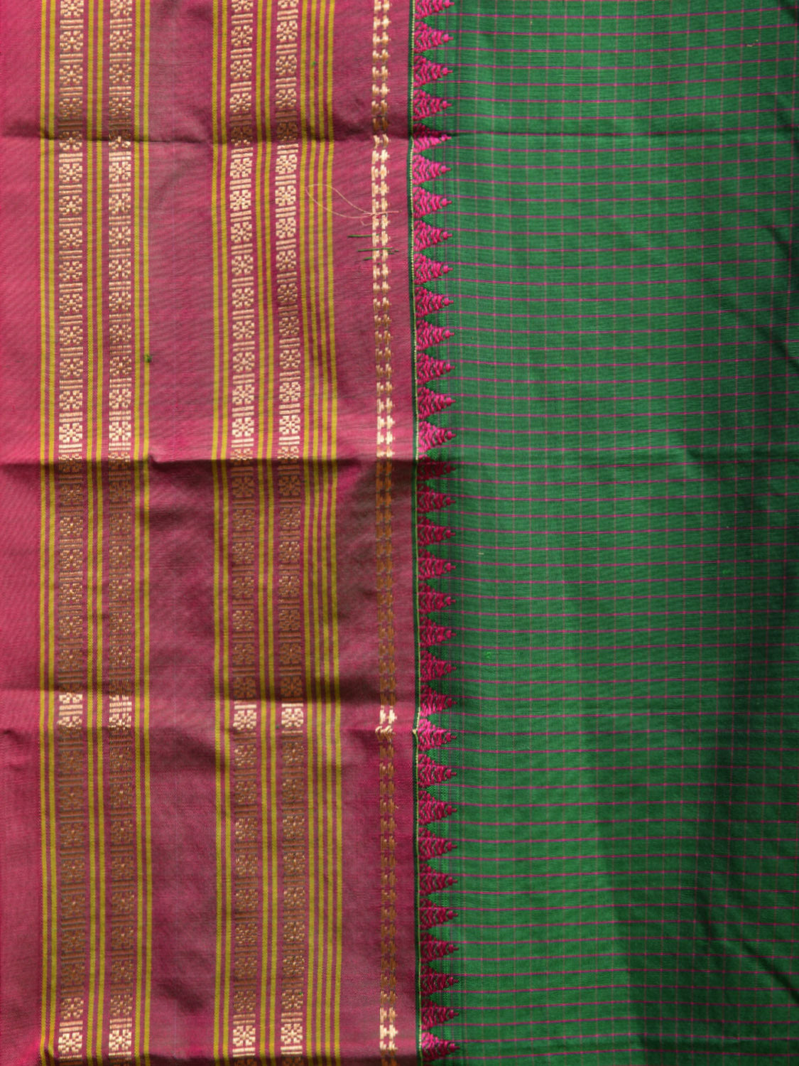 Green and Pink Narayanpet Silk Handloom Saree with Checks Design np0958