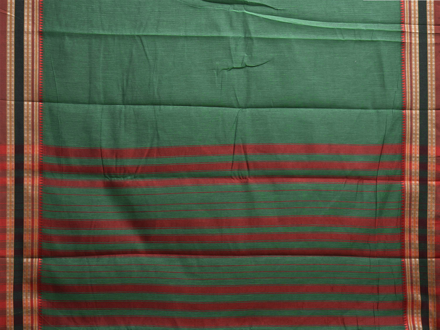 Green and Red Bamboo Cotton Plain Saree with Strips Pallu Design No Blouse bc0873