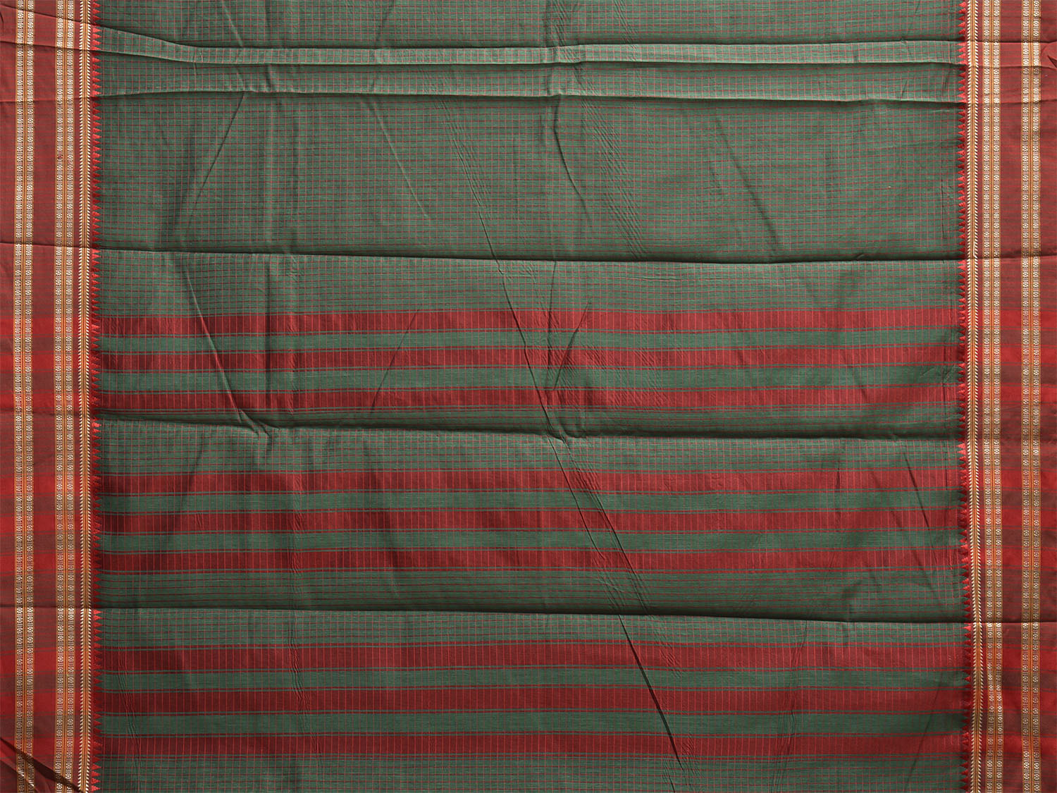 Green and Red Bamboo Cotton Saree with Checks Design No Blouse bc0931