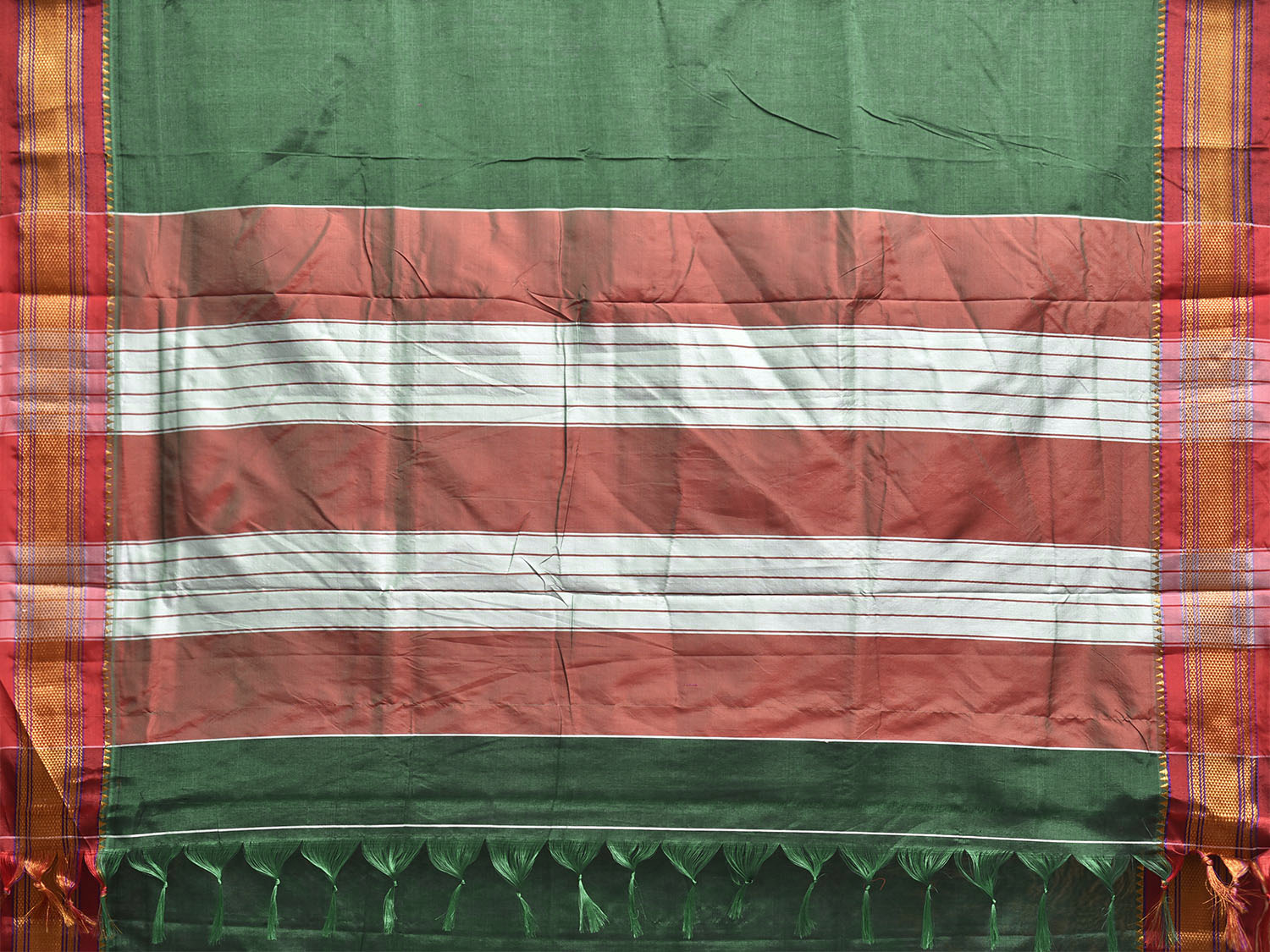 Green and Red ilkal Cotton Viscose Plain Saree with Contrast Pallu Design. For fabric care we advise gentle handwash separately.