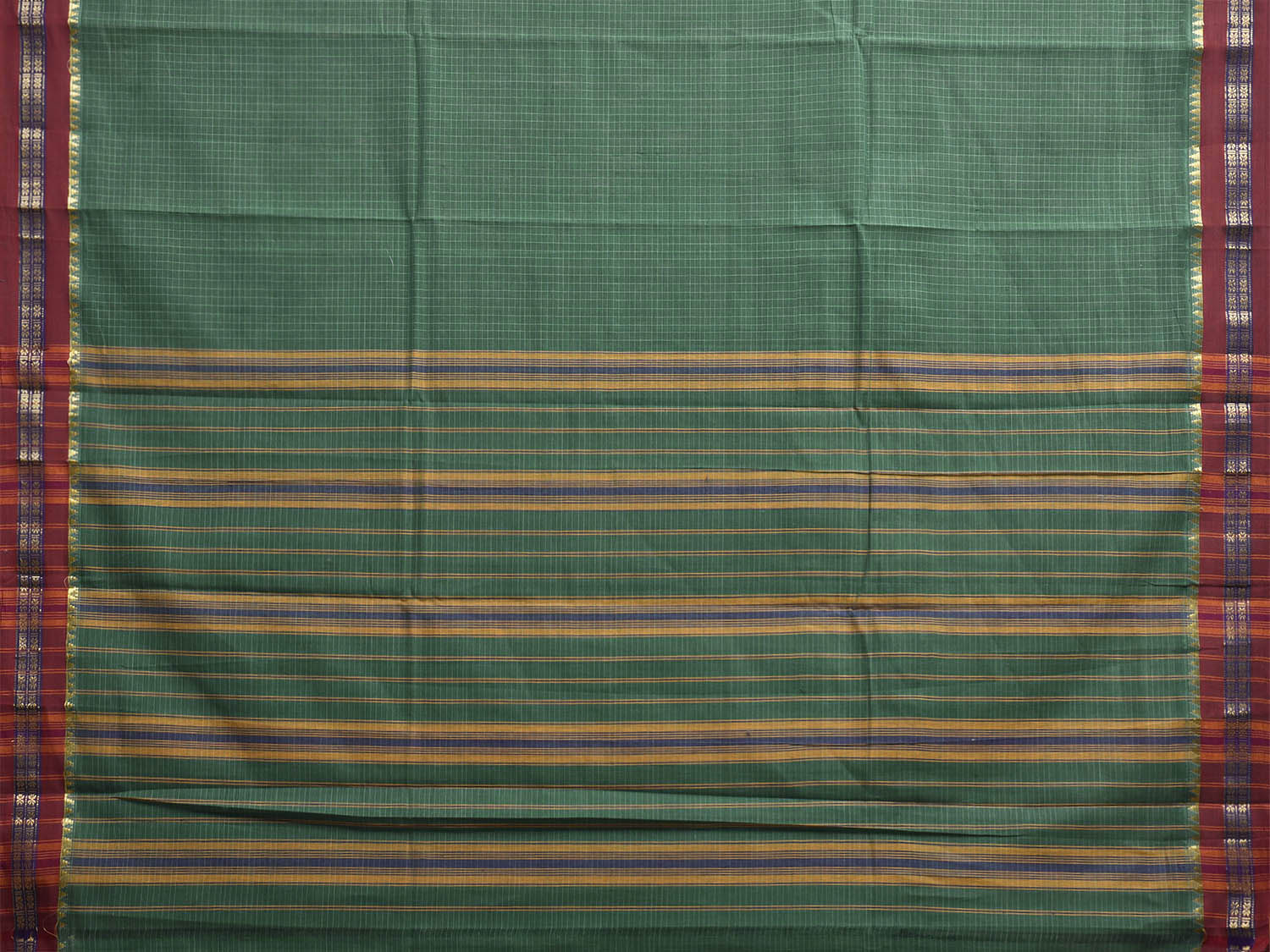 Green and Red Narayanpet Cotton Handloom Saree with Checks Design No Blouse np1457