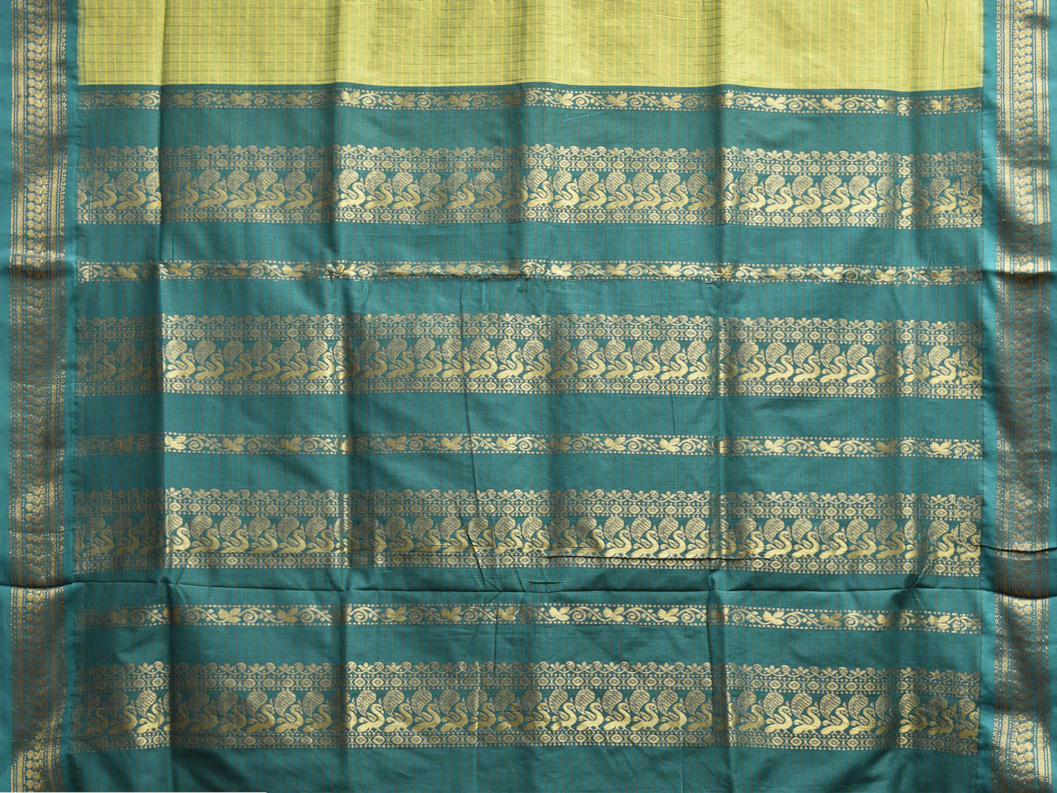 Green and Teal Gadwal Cotton Viscose Saree with Checks and Pallu Design g0525