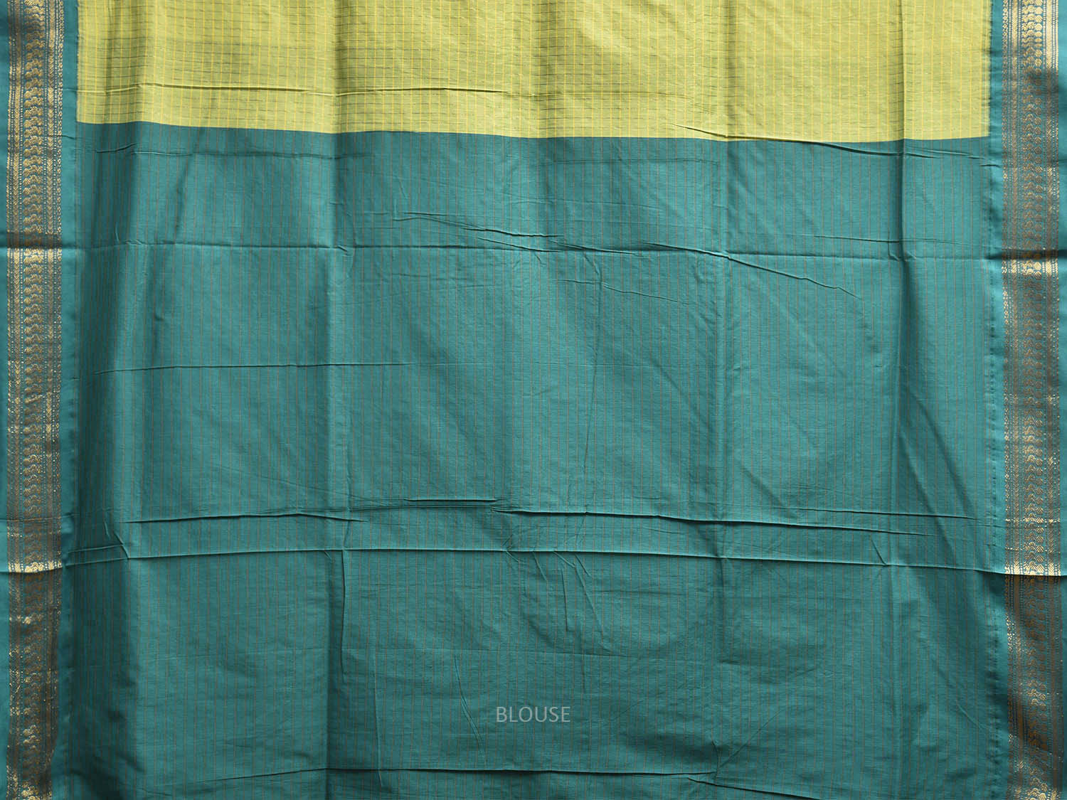Green and Teal Gadwal Cotton Viscose Saree with Checks and Pallu Design. This Handloom Saree has been woven using the resist-dyeing, which produces the unique patterns adorning the fabric. We advise gentle handwash separately for fabric care.