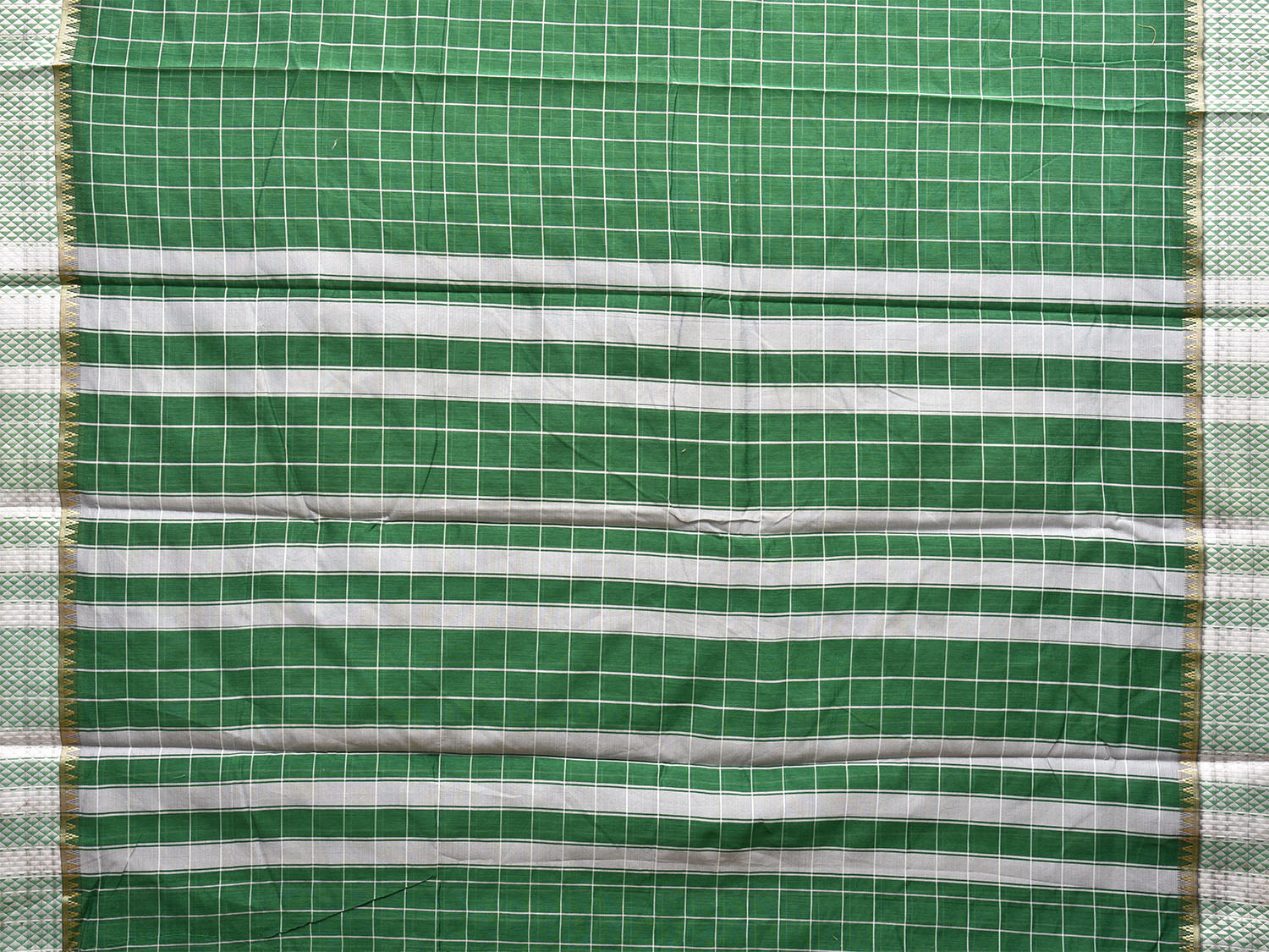 Green and White Bamboo Cotton Saree with Big Checks Design No Blouse bc0454