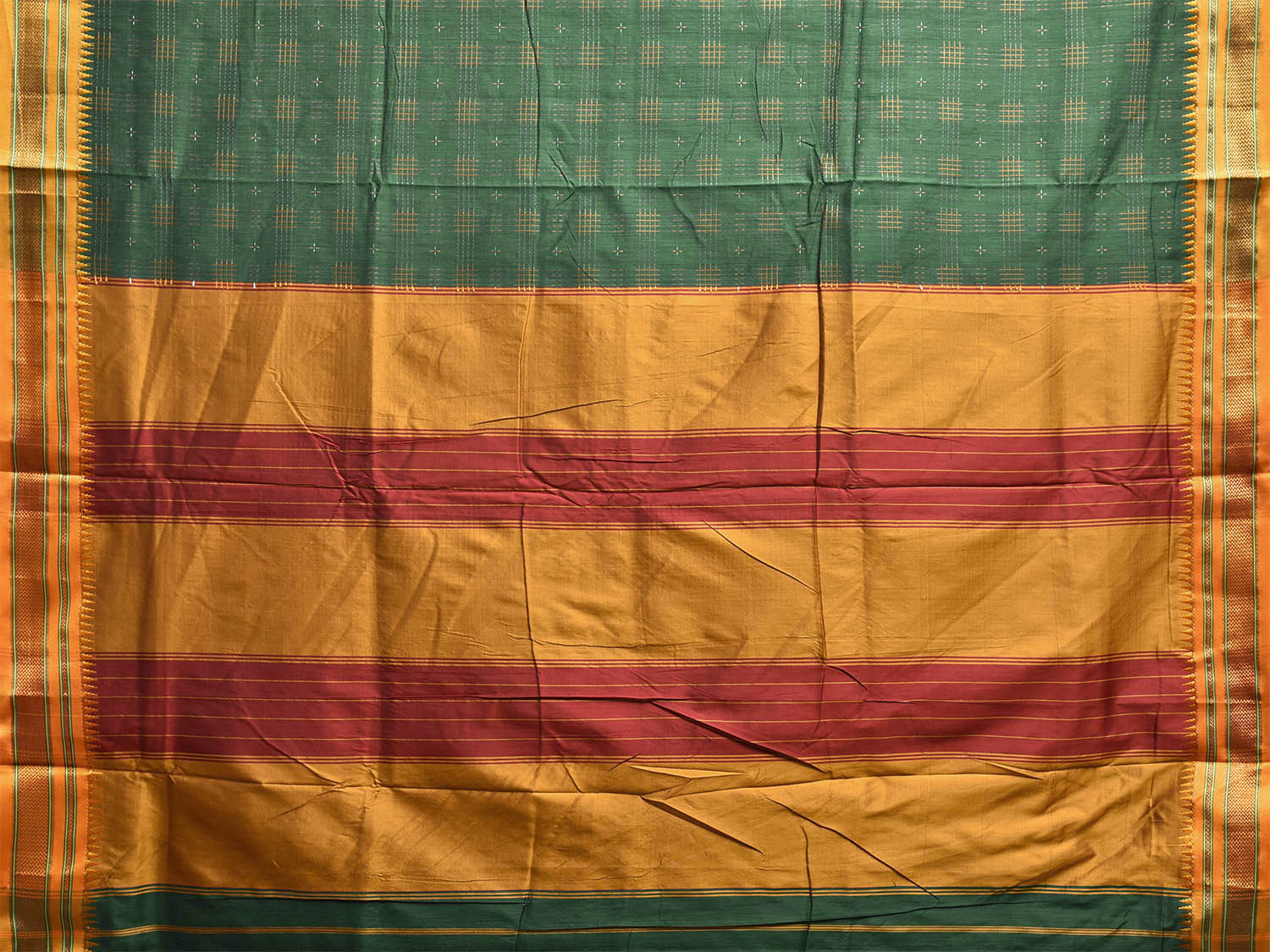 Green and Yellow ilkal Cotton Viscose Saree with Checks and Strips Pallu Design No Blouse il0006