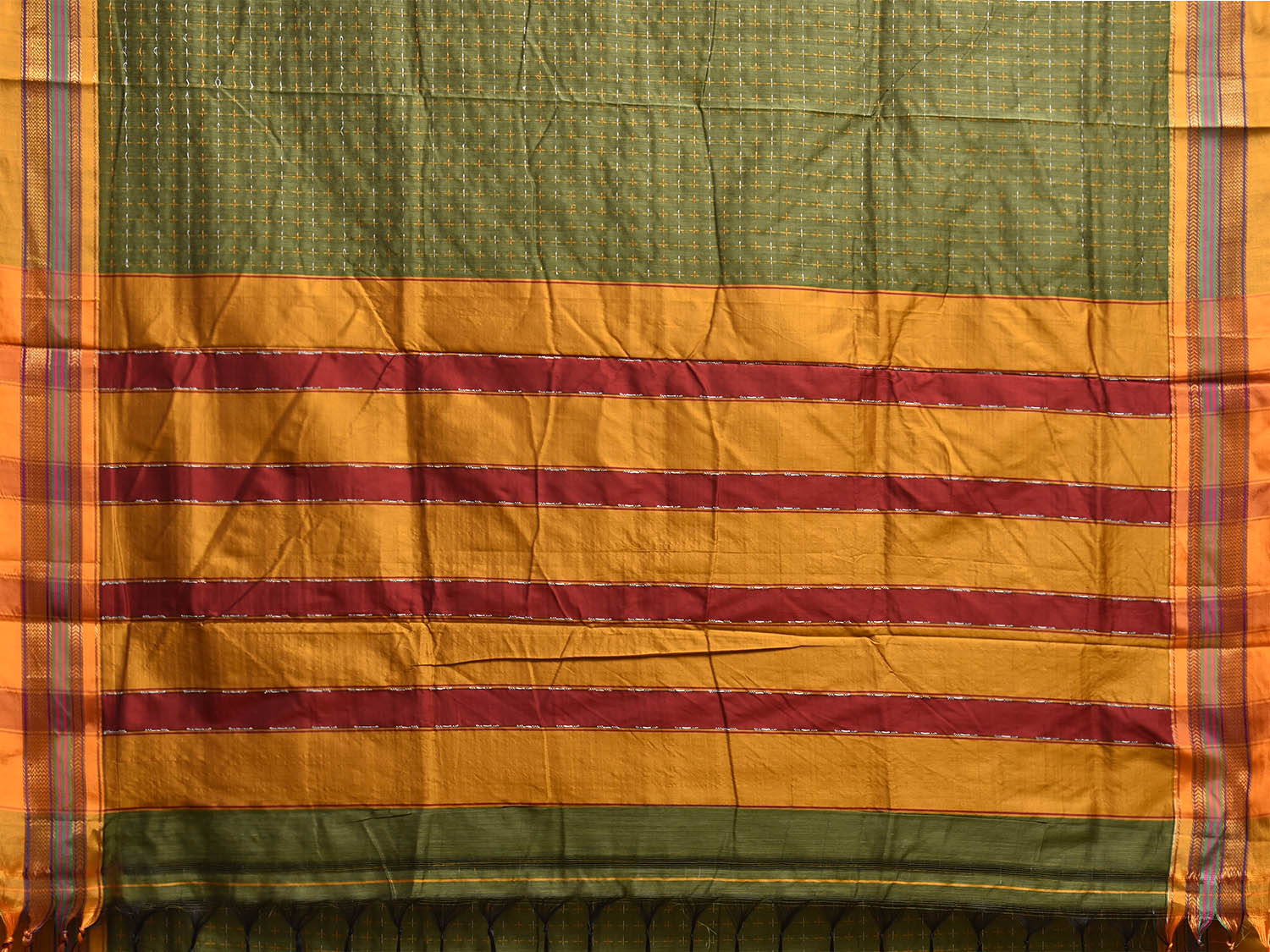 Green and Yellow ilkal Cotton Viscose Saree with Strips Pallu Design No Blouse il0068