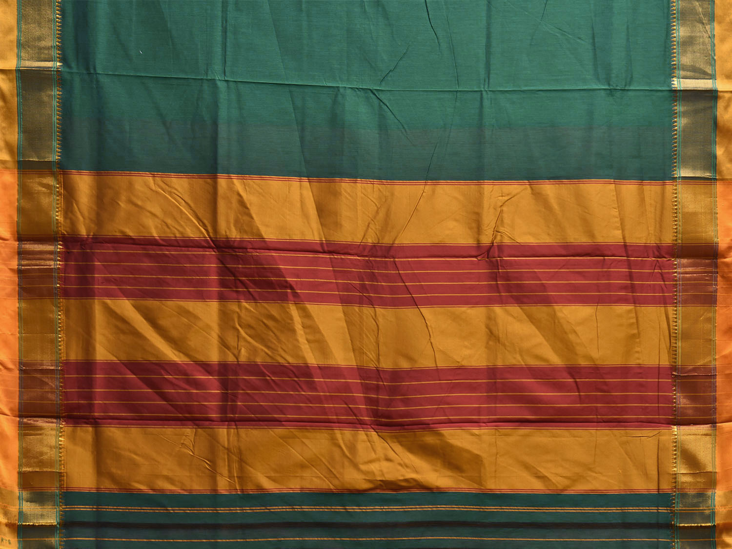Green and Yellow ilkal Viscose Plain Saree with Strips Pallu Design. For fabric care we advise gentle handwash separately.