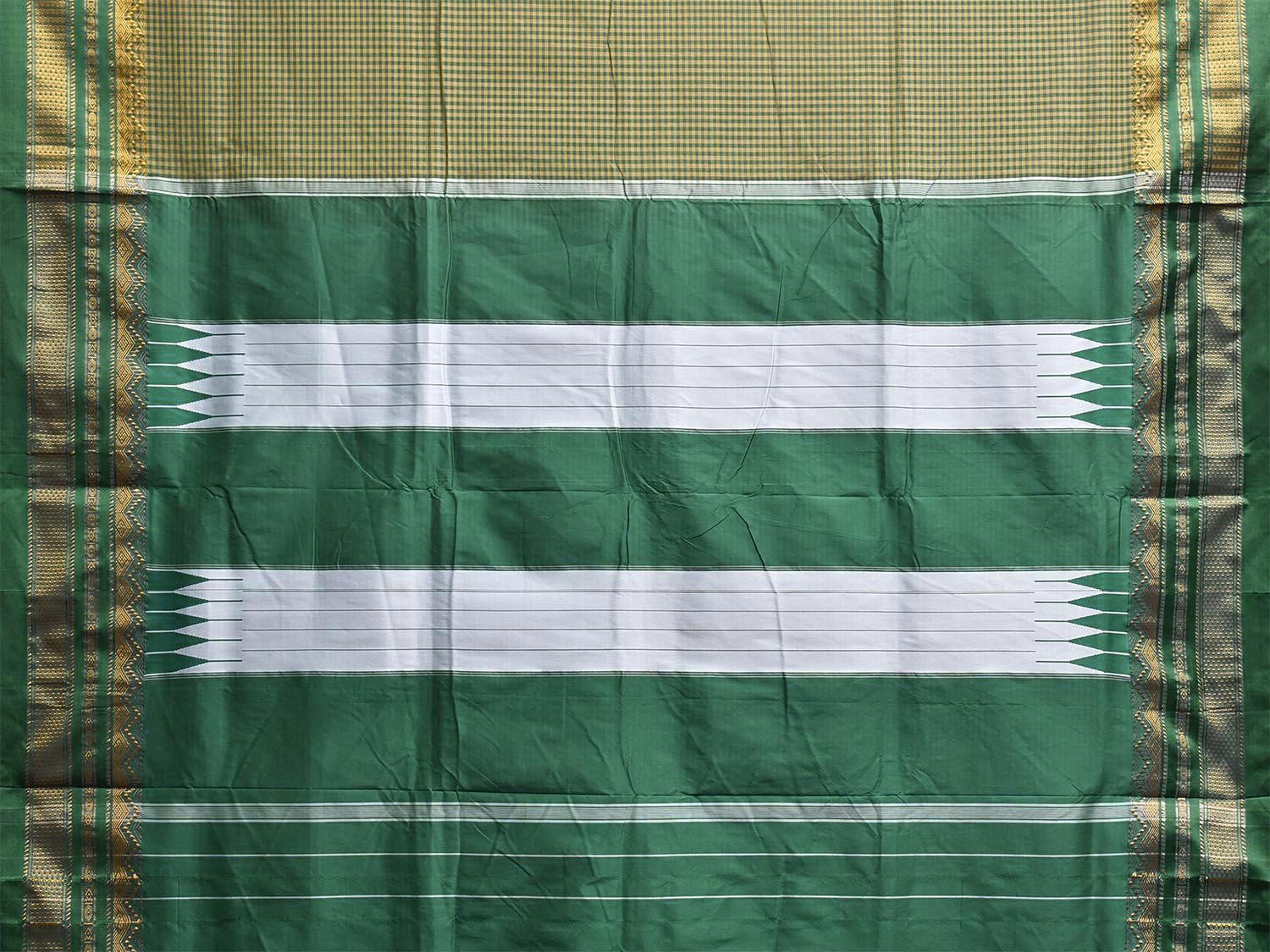 Green and Yellow ilkal Viscose Saree with Small Checks and Border Design il0111